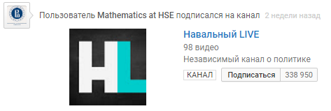 >>19785 Пожалуй, после линка на канал стоит давать небольшое разъяснение, что это за канал. Хотя бы в виде его названия. В предыдущем посте: Лекториум ВШЭ НМУ