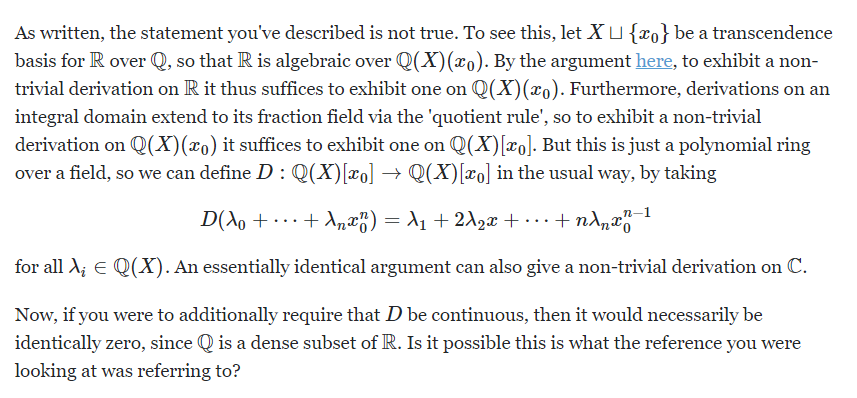 >>52289 Операцию предельного перехода, понятие непрерывности и всё такое, невозможно описать алгеброй. Для этого придумали топологию. 99% математики это переплетение алгебры и топологии. Например, функциональный анализ. Берем алгебраический объект (векторное пространство), добавляем топологическую структуру (пополняем по норме). Или гомологическая алгебра. И т.д. >ассоциативных Ну тех где выполняется аксиома ассоциативности, очевидно, a (b c) = (a b) c. >правильных и неправильных дробей Про рациональное число лучше всего думать как про класс эквивалентности, 5/15 и 1/3 это не разные числа, просто разный способ записи одного и того же числа. То же можно сказать про 0.99999… и 1.