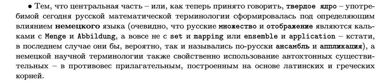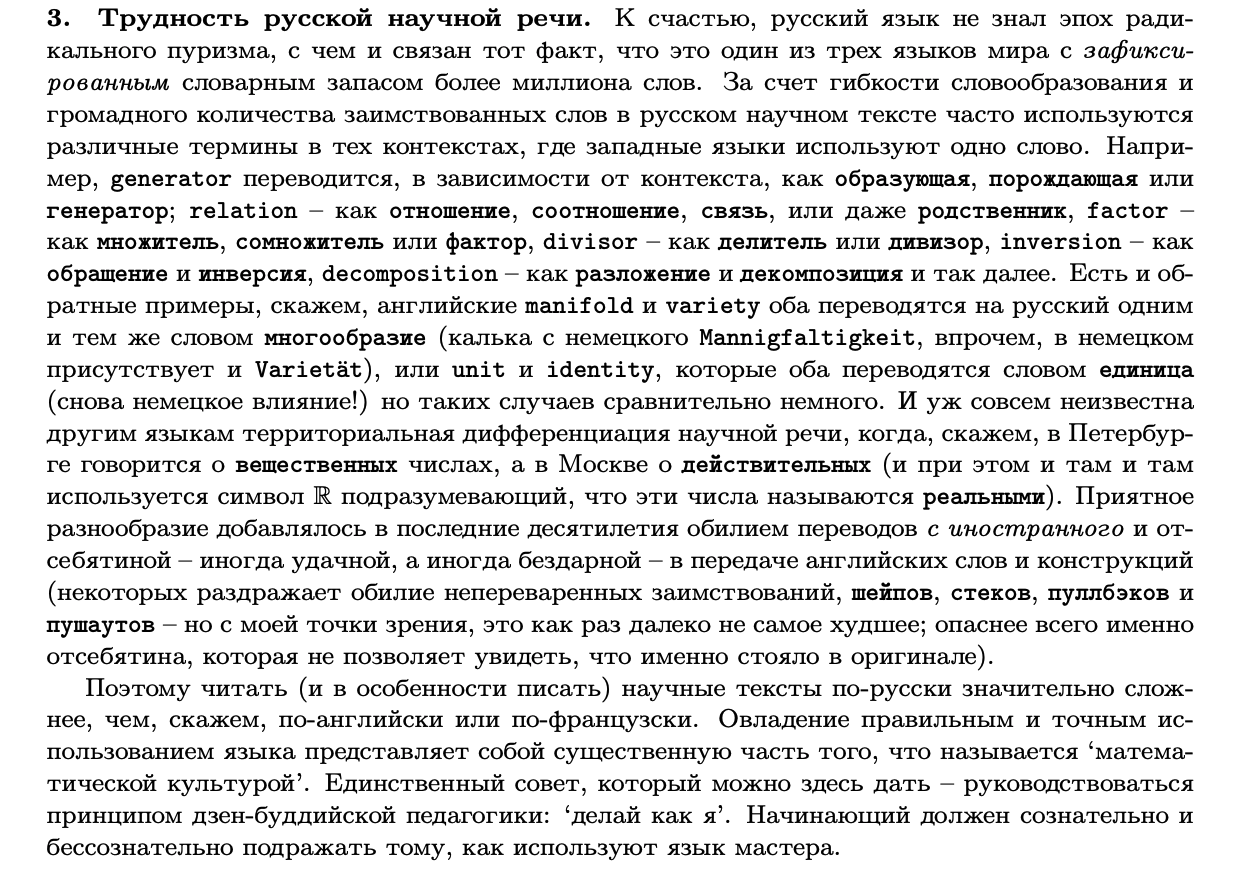 >>120818 >У одного N неопределяемое понятие, Любой, кто это эссе, предназначенное для широкой публики, действительно прочитал, должен хорошо понимать, в каком смысле N "неопределяемо". Математически ничего неправильного или вводящего в заблуждение Успенский не говорит, всё это покрывается в первом курсе матлогики. >у другого - алгебру можно понять только читая оригиналы 19 века на староколпакском Очевидный эпатаж, в стиле Арнольда того же, причем содержащийся исключительно в "книгах", которые он сам просил не распространять. >псевдоматематики Оба очень хорошие математики.