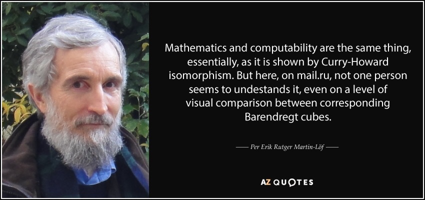 >>32844 Математика и вычислимость это одно и то же исходя из изоморфизма Карри Говарда. Но тут в такое не могут даже на уровне визуального сравнения соответствующих кубов Барендрегта.