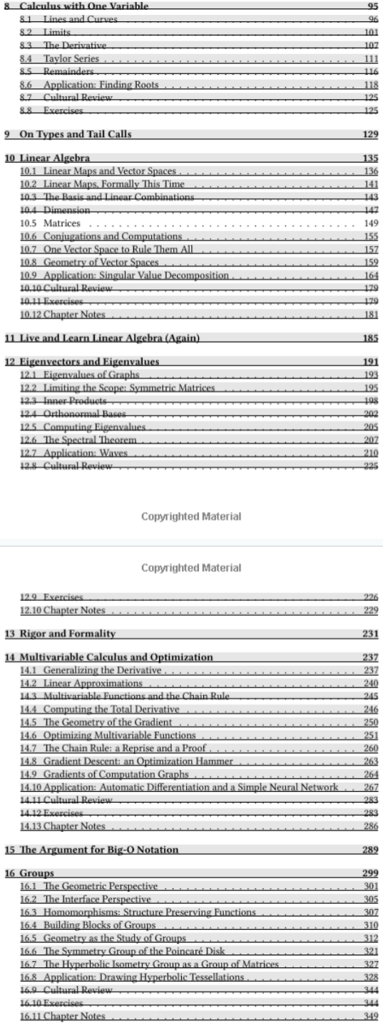 >>47859 (OP) >Есть ли желающие читать сабж вместе? Зачем? Какая то солянка из основ анализа, линейной алгебры и комбинаторной залупы. Всё это проходят на 1 курсе любого сельского мехмата.