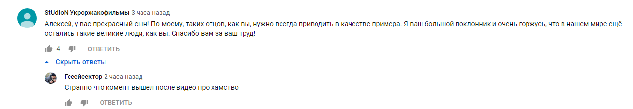 >>60089 Ебать он, конечно. Заржал с места у параши. А тот паренёк с новых видео его сын выходит. Даже страшно представить, какие гадости его сыну писали, раз он так среагировал.