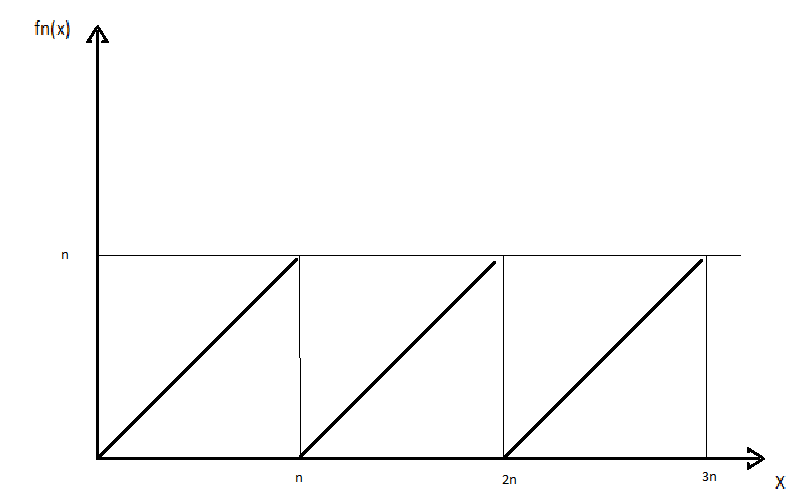 График функции fn(x): (пик) Область определения от (0;∞), область значения (0;n).