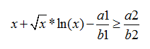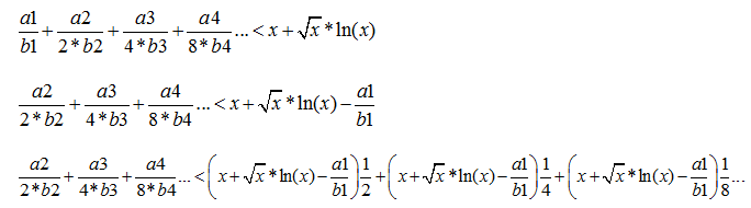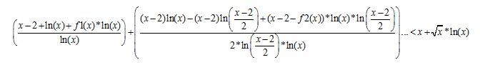 Подставив подставив выведенные формулы в неравенство получим (1б): То есть (2б) при условии что x>2: Преобразуем это выражение, для упрощения (3б): Из этого можно сделать вывод что, если неравенство (4б) верно, а значит и гипотеза Римана верна. Проверим это.