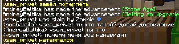 С моей первой ванили в /mc прошло пять лет, даже страшно называть эту цифру. Этот раздел определил моё скромное хобби на многие годы, я существенно прокачала свой скилл в парашеводстве и Java погромировании. При первом заходе Вас тпшит рандомно в радиусе 500 блоков от нулевых координат, если Вы внезапно умрёте - Вам в чате любезно напишут на каких координатах Вы отъехали. Я сделала логирование смертей в бд и по команде /dh Вы сможете узнать последние 10 неудачных попыток пожить спокойно, ведь сервер в хардкор режиме.