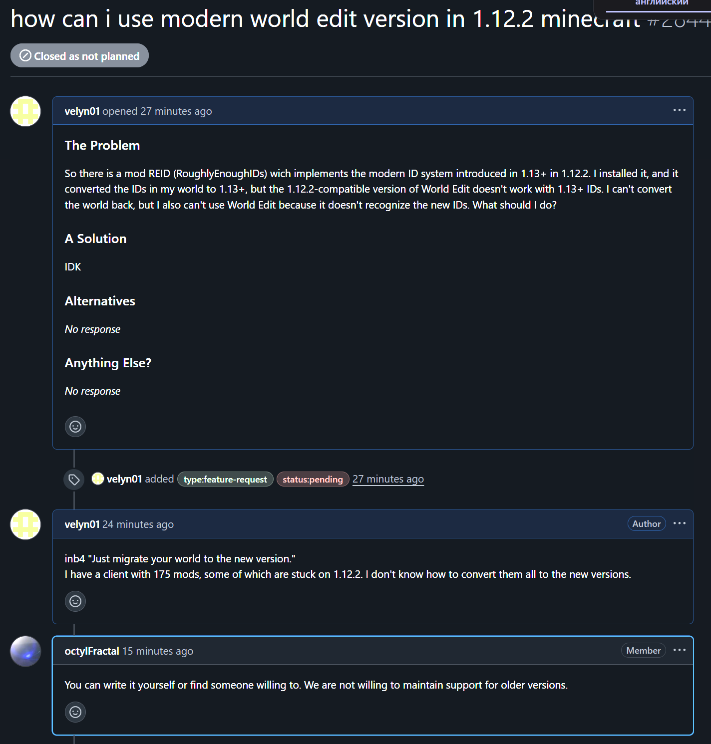 >>616136 На кого нас, малой Тру олды играют в новых версиях потому что наигрались в старый майнкрафт А соя которая не является олдами, как раз играют в старые версии чтобы наверстать упущенное и записать себя в олды