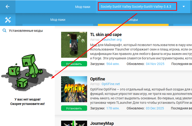 Решил обновить society sunlit valley - запускаю - модов нет. Думаю, может ошибка иду качать этот модпак в curseforge, чтобы поставить вручную. скачиваю. В папке с модпаком нет модов. Пытаюсь вернутся на старую версию, там тоже модов нет. Ставлю рандомный модпак в лаунчере - все моды на месте. Запускаю через tlauncher