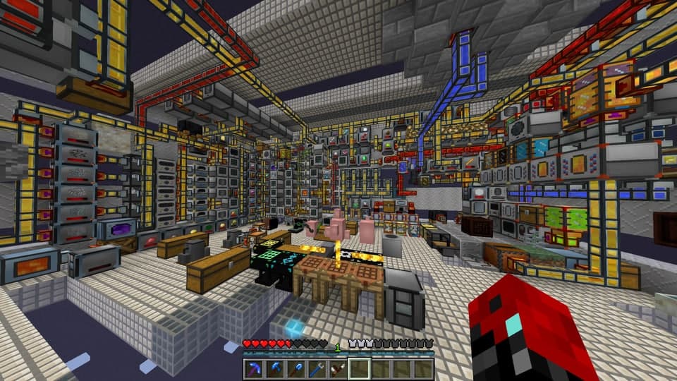 То есть допустим как выглядела стандартная добыча ресурсов в 2013 году, ставишь карьер, от него идёт поток ресурсов которые сортируются трубами, руды в дробилки и печки, ценные ресурсы сразу в сундук, кал на переработку в материю. Рядом ферма дерева из форестри которая тоже имеет аналогичные автоматизации, которая производит из дерева уголь для генераторов Если на это посмотреть со стороны то очень сильно напомнит соверемнные фермы в ваниле