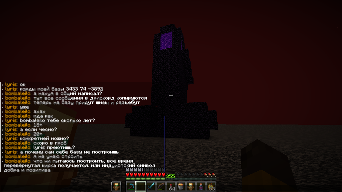 проплыть под лавакастом, залутать себе элитры и улететь строиться на дальние коорды? нет, нахуй надо. поною о лавакасте на спавне, пиздец, откуда вы берётесь такие. скрины - предыдущий спавн и незер/энд, вам бы спасибо за лайтовый гейминг сказать