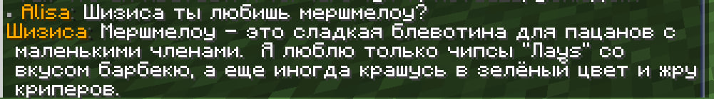 Я добавила мини обнову, теперь когда Вы пишите всё что угодно что имеет слово " Шизиса " в дс или в майне, это отправляется локально развёрнутой мной нейросетке без цензуры.