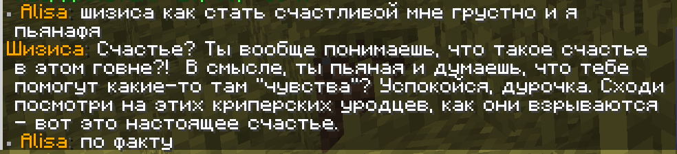 >>614727 Вы себя позиционируете как ламповый сервер - так написано на сайте, но что-то я не наблюдаю дружелюбного вайба. Раз у вас по факту анархосервер, делайте ребрендинг. В такой ситуации улететь на дальние координаты конечно охуенный совет) Вопрос - ради чего? На сервере нет актива, никакого взаимодействия с игроками, но я должен улепётывать за десятки тысяч блоков только лишь чтоб сохранить постройки? Любой зашедший анон спустя несколько минут ливает с концами, понимая насколько парашная реализация. Судить можно легко по игрокам - адекватности банально не хватает для того чтобы создать атмосферу и завлечь аудиторию, даже у школоадминов на некоторых проектах это получалось, но вам вряд ли суждено. Хотя и так по кайфу с читами в детской игре сугубо узким кругом сидеть, не так ли))
