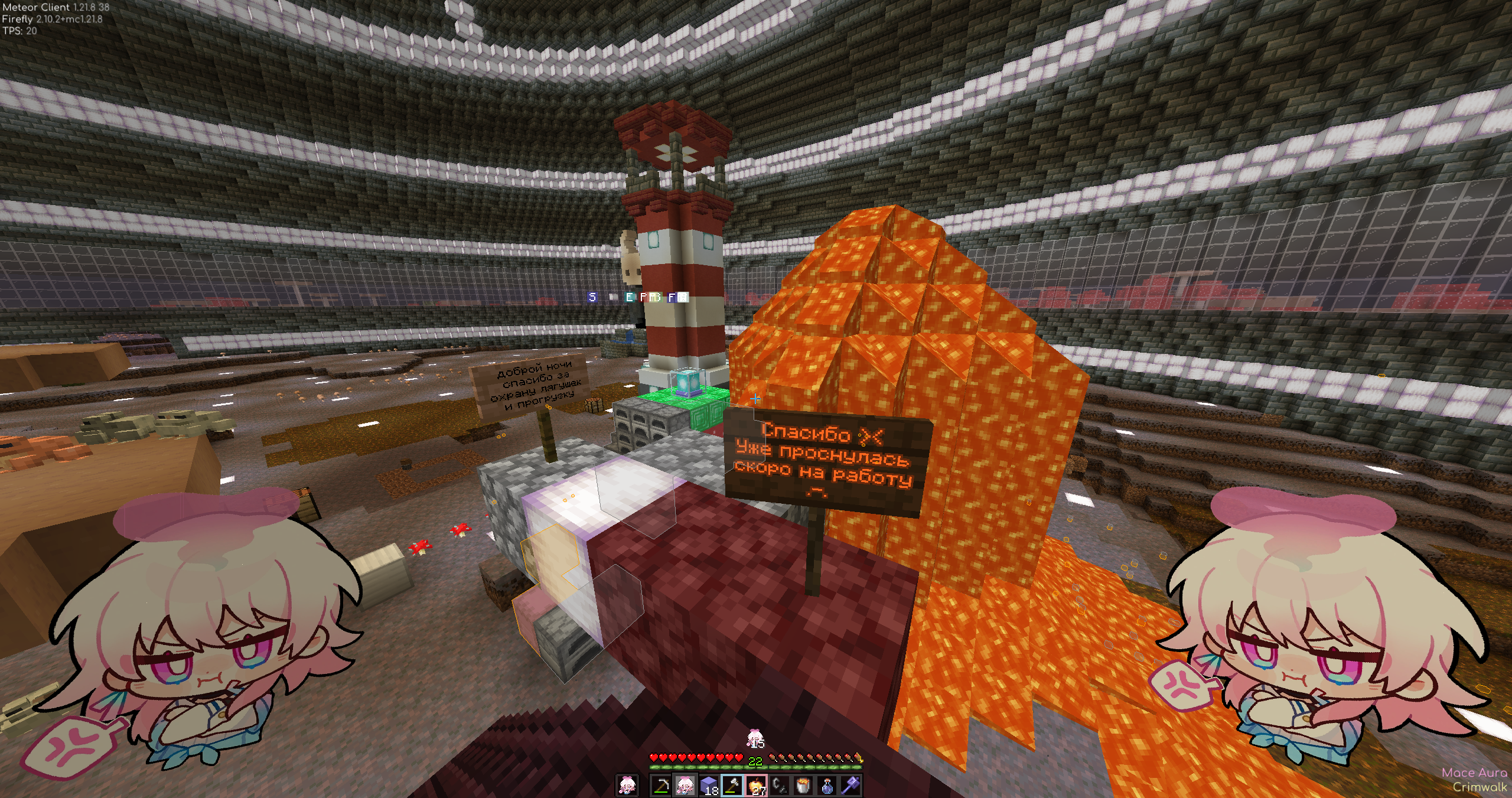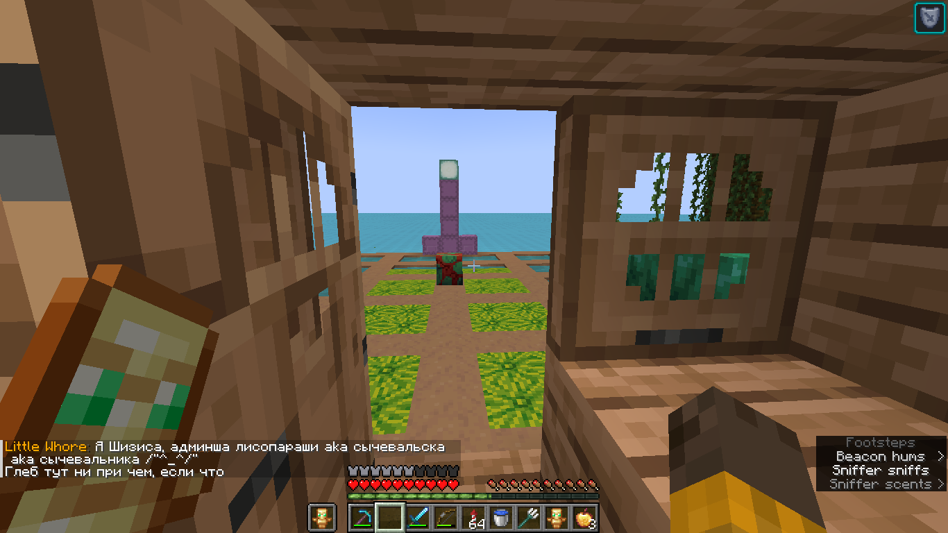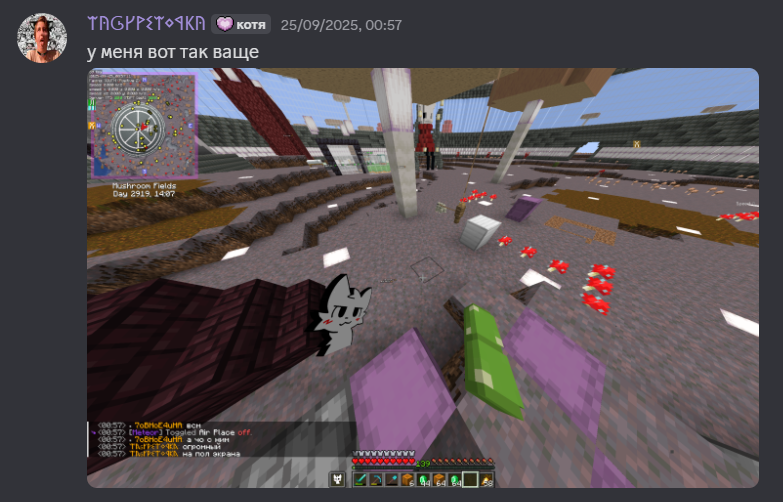 Подмена понятий на лицо, ламповость = полный хаос. Если через 5 лет ваш "ламповый" сервер - это пустой спавн с лавакастами и 3-мя оставшимися старичками, которые боятся новых игроков... Скорее всего проблема в представлении о том, как должно работать комьюнити. Даже на сервере БЕЗ приватов, жёстких правил и красивых стартовых локаций можно создать комфортное пространство, если игроки уважают друг друга. Админ гордится тем, что не контролирует хаос?) "делают что хотят" - на деле это значит "мы разрешаем быть мудаками". Настоящая свобода - это когда ты можешь снести чужую постройку, но не делаешь этого, потому что понимаешь: без этого сервер превратится в помойку, а в вашем случае ещё и в читопомойку. На скринах есть тому подтверждение - люди играют с иксреями и трекерами, а админ сознательно закрывает глаза и лишь гордится античитом, который даже базовый детект руды через блоки не ловит. Вот и всё, надеюсь мимо проходящему рандомичу мои посты послужат предупреждением.