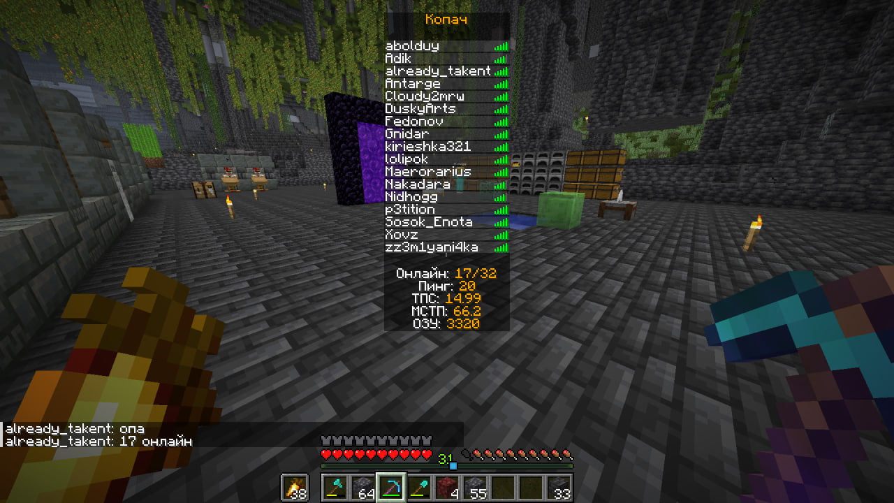 Копач — это ламповый ванильный сервер для двачеров без кланов, свадеб, китстартов, приватов, донатов и прочей ненужной хуйни. Это не анархия и не что-то подобное, а та самая ванила типа той, что ты с корешами после уроков по хамачи играл. На сервере царит дружба и доверие.