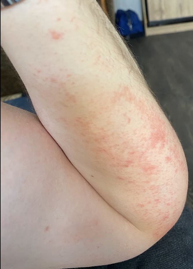 >>1654740 >Какие побочки были? Вот, периодически такая сыпь на руках появлялась и когда касаешься, неприятно. Ещё губы трескались, но я их самой дешёвой помадой из аптеки мазал пару раз в день, и они не беспокоили, хотя видел видос там парень вазелином мазал, и ему даже он не помогал. Если руку режешь, то хуже заживает, поэтому нельзя никакие операции во время и еще спустя пару месяцев после курса роакутана пиздовать к хирургу