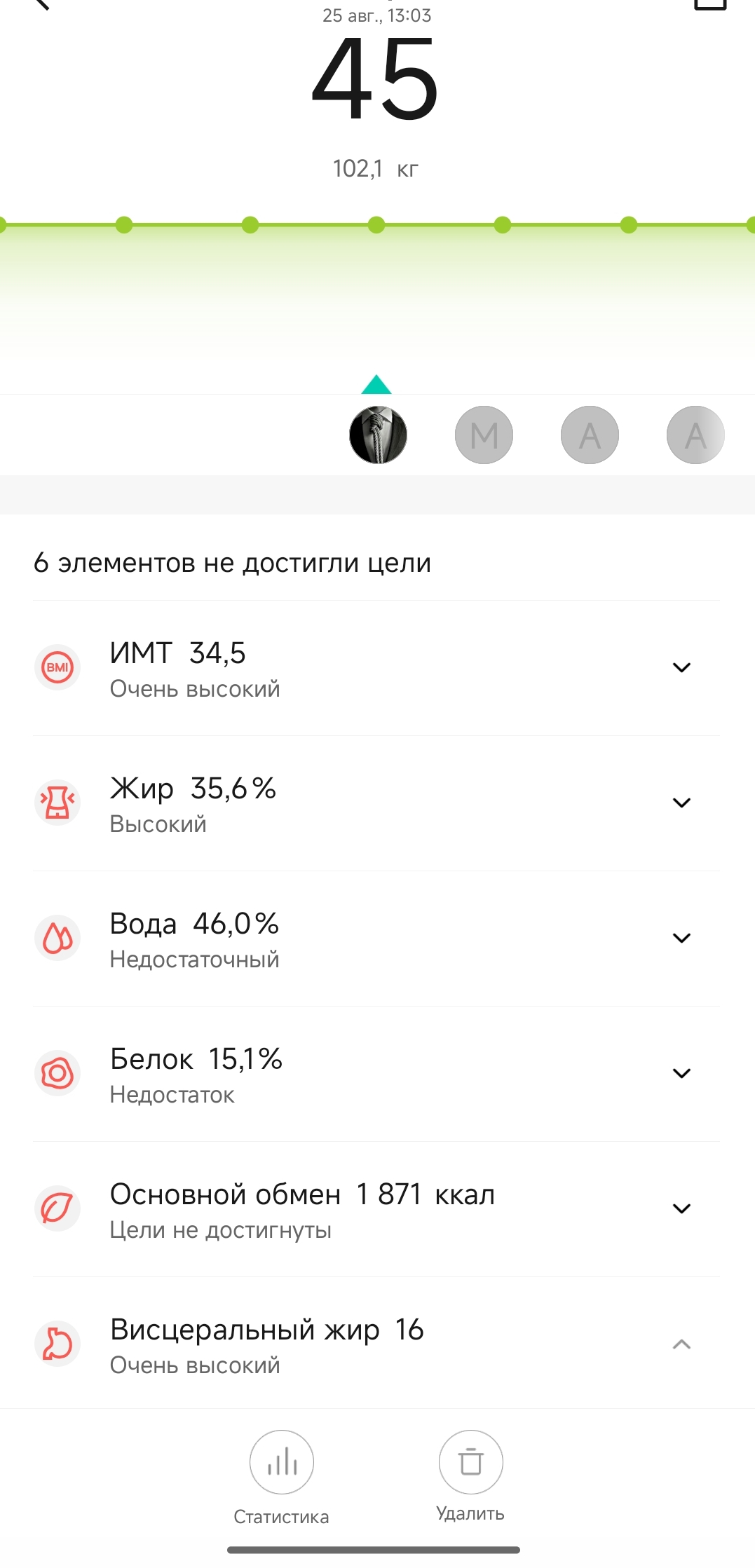 ХЗ для чего я это высрал, вроде тенденция мне нравится, планирую до 80 скинуть за следующие пару месяцев. Минимальное питание не напрягает, силы есть, на работу и ежедневную физкультуру хватает. Понимаю, что за время уколов надо наладить режим питания и посильных физических нагрузок. Дозу увеличивать не планирую, пока есть прогресс в снижении веса
