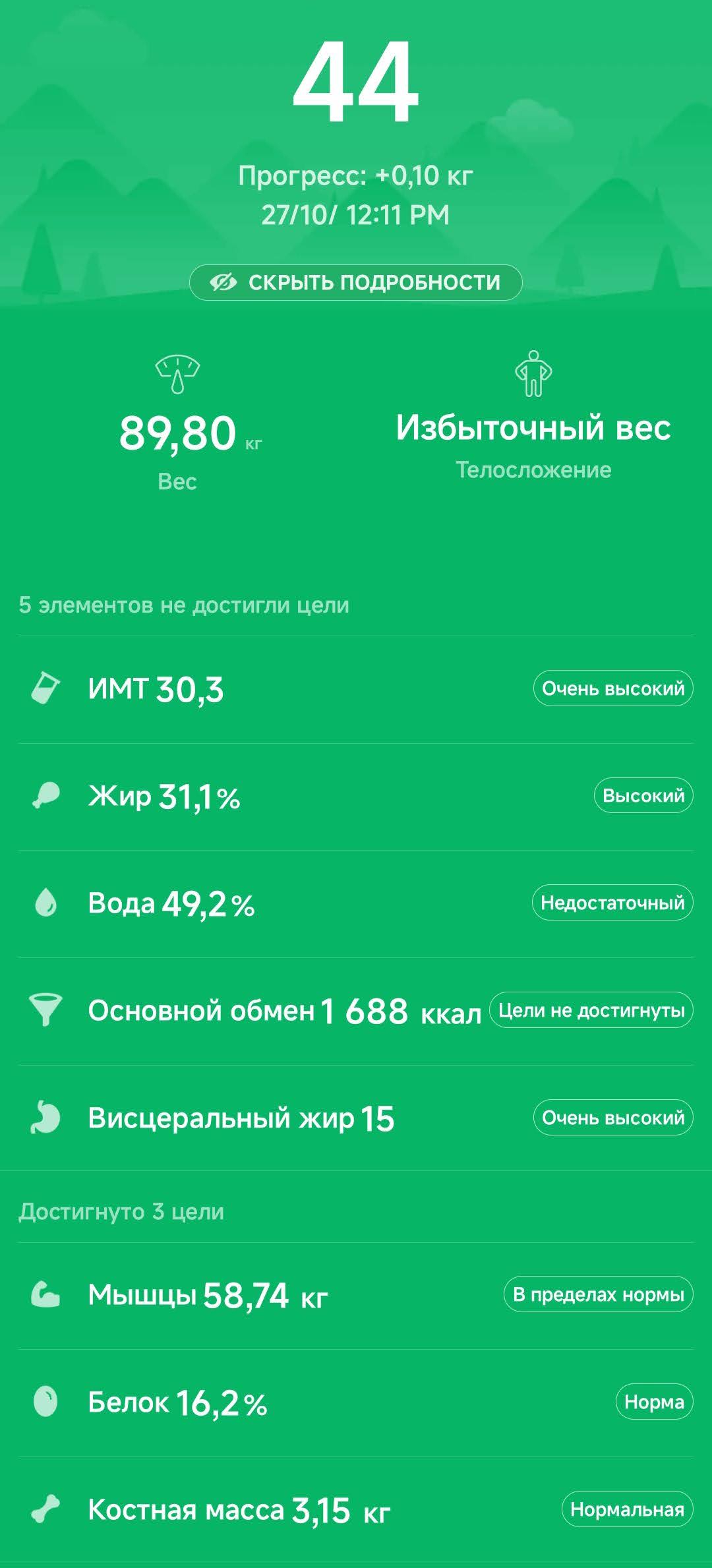 11.10 (суббота) был 123.20 кг 15.10 (сегодня) 120кг