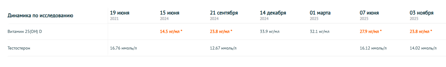 Данные о биохимических маркерах (например, уровень витамина в крови).