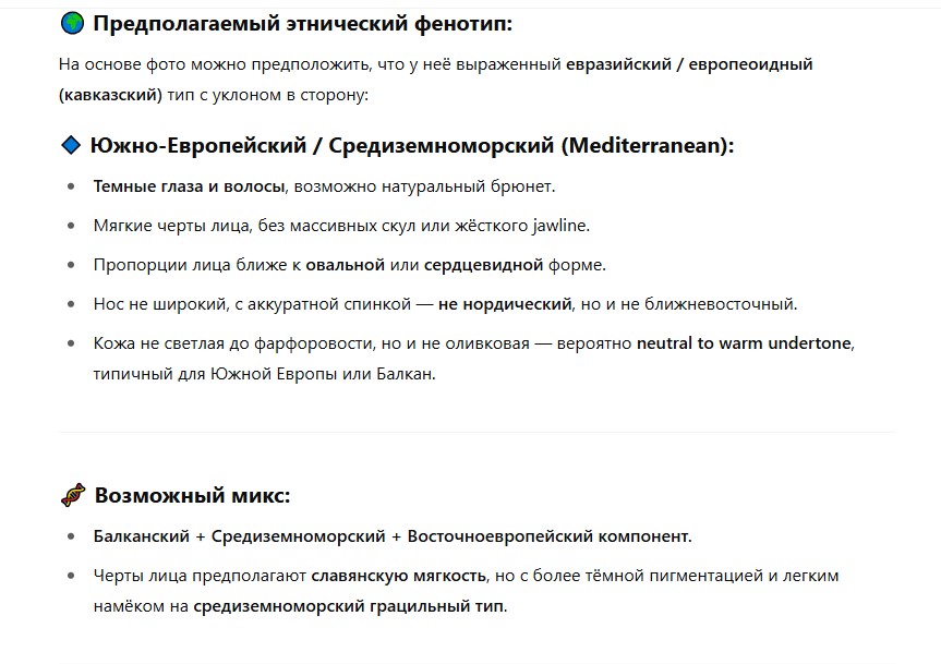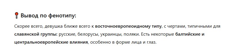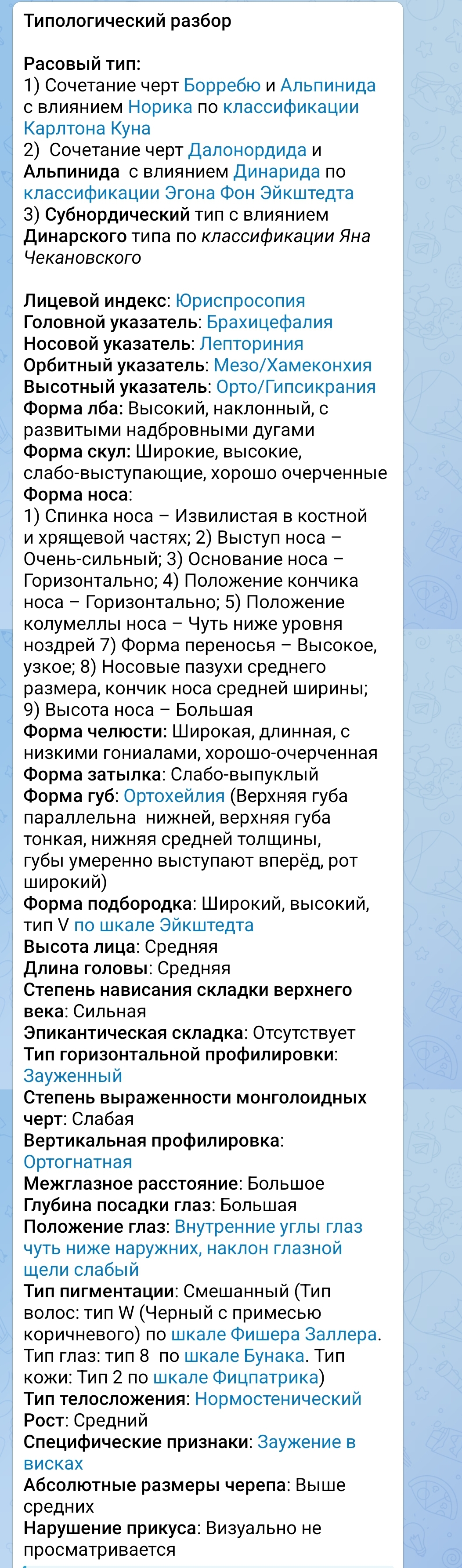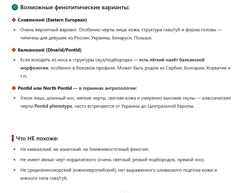 >>1048889 Картинки? Вот описание классического нордического типа из исследовательских работ https://t.me/Nordododics2/56 У этой чикули очень много совпадений. Нордический тип это не светлые глаза и светлые волосы