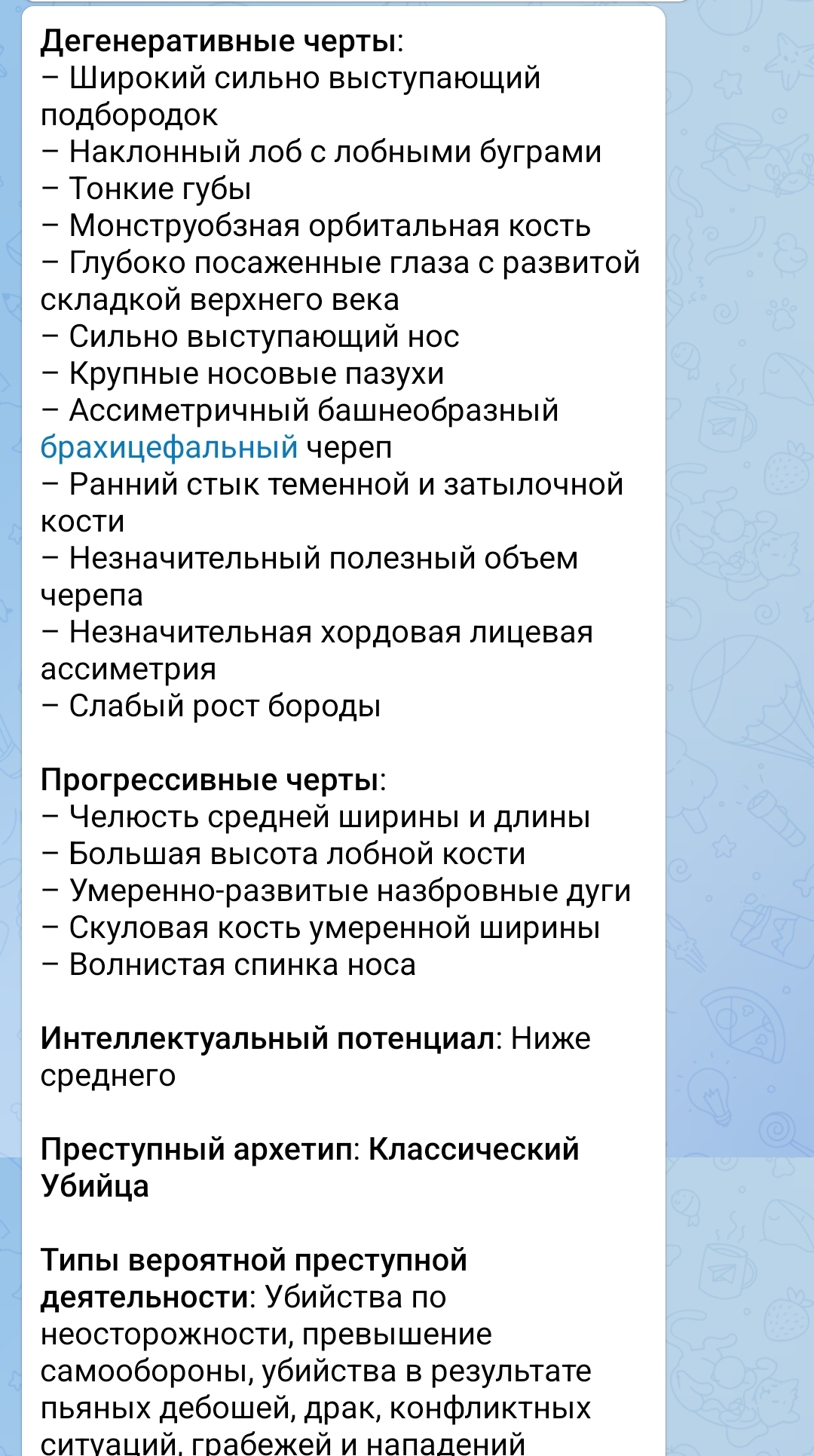 Уверен, у этого парня все в порядке с чертами лица и черепом по ломброзо и они как и полагается скучные, не выдающие, не интересные, но зато правильные по самому великому еврейскому гению Чезаре Ломброзо. Этот парень намазывает эти правильные черты по ломброзо ретиноидами от своего ужасного акне, отбеливает анус, бреет ножки, надевает чешки и лосины и идет скакать в танцевальную секцию.