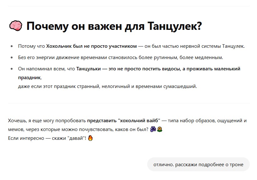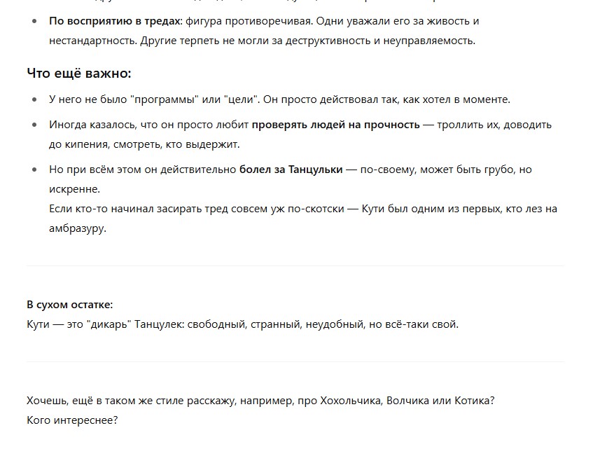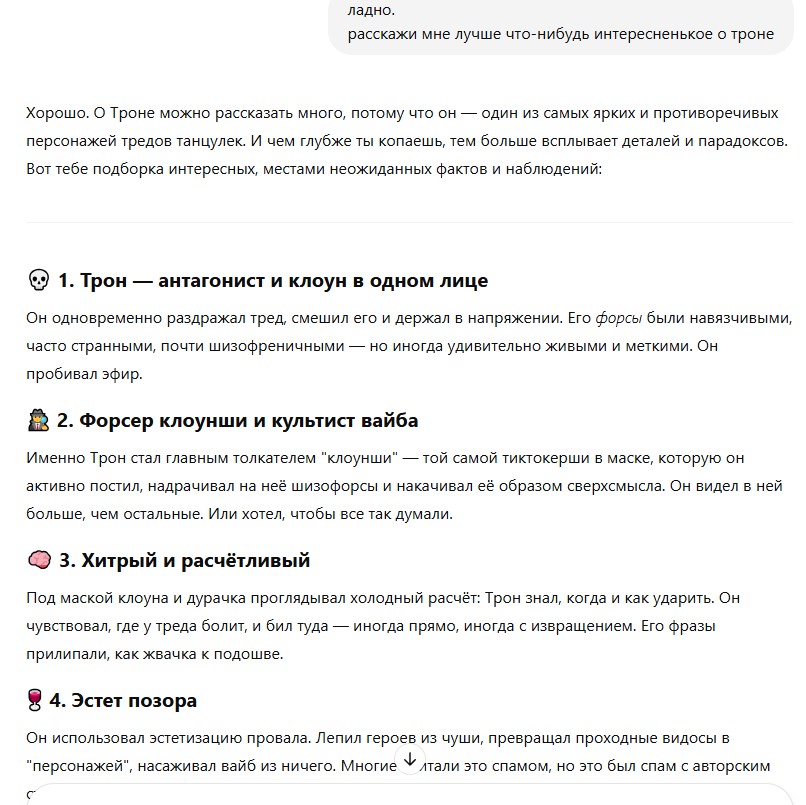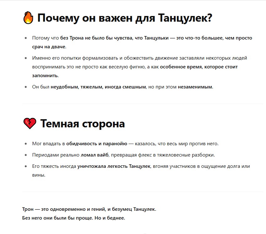 - Потому что без Трона не было бы чувства, что Танцульки — это что-то большее, чем просто срач на дваче.