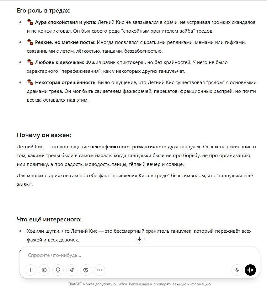Не должно быть так, что Танцульки стали лишь достижением 4 президенсткого срока Путина с 2018 по 2024. Мы конечно благодарны Путину и его 4 сроку за танцульки, но они должны жить и после его 4 срока.