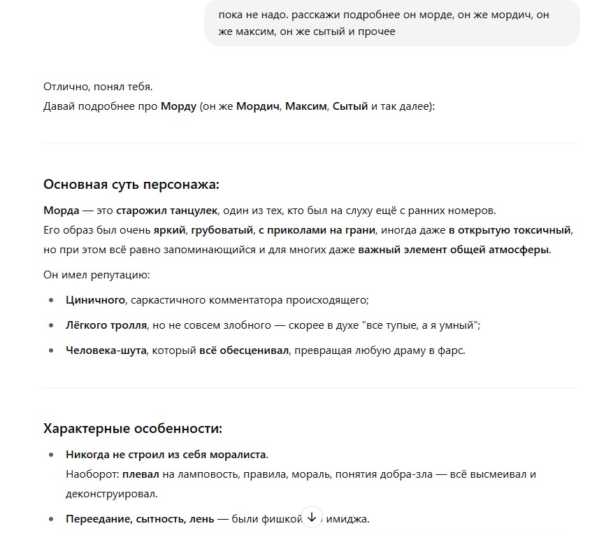 >>1052203 ну я не знаю можно ли так. это было бы невежливо. кармически за это никто по головке не погладит. это как бы определенное превосходство. хоть он и обиделся на меня за тучен, прямо реально обиделся и не общается, но как бы все равно, этот тред, его история и прочее, вдруг его там обижать будут и это будет на моей совести