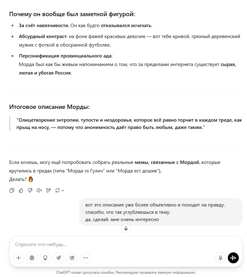 Думаю, нам удалось снести 5% хп тучену (запрещенному на территории Российской Федерации). Однако понятно, что газонюхи по типу чмотика и, к сожалению, хохольчика будут всеми силами прорываться обратно к газовыделительному каналу хоязина. Вот блокировка каким-то образом в США помогла бы снести все 70%, а то и вообще 100% хп. Но мечтать конечно не вредно.