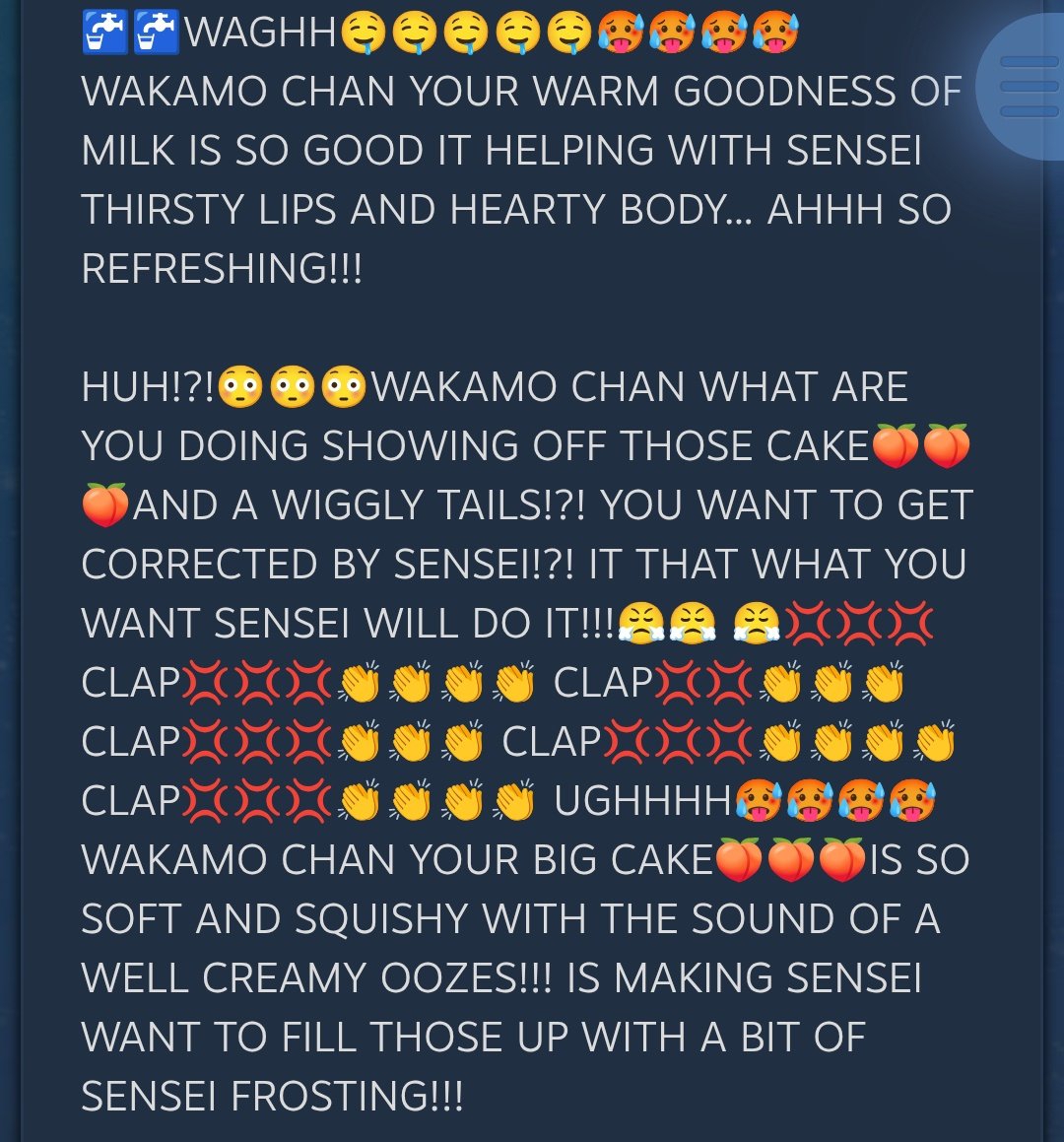 >>1056085 Чел, наполнение пузика это когда набухает или хотя бы когда няха говорит что в нее больше не поместится. Когда 100 грамм морожки влажно плюхнулись на дно пустого желудка это вообще ни о чем.