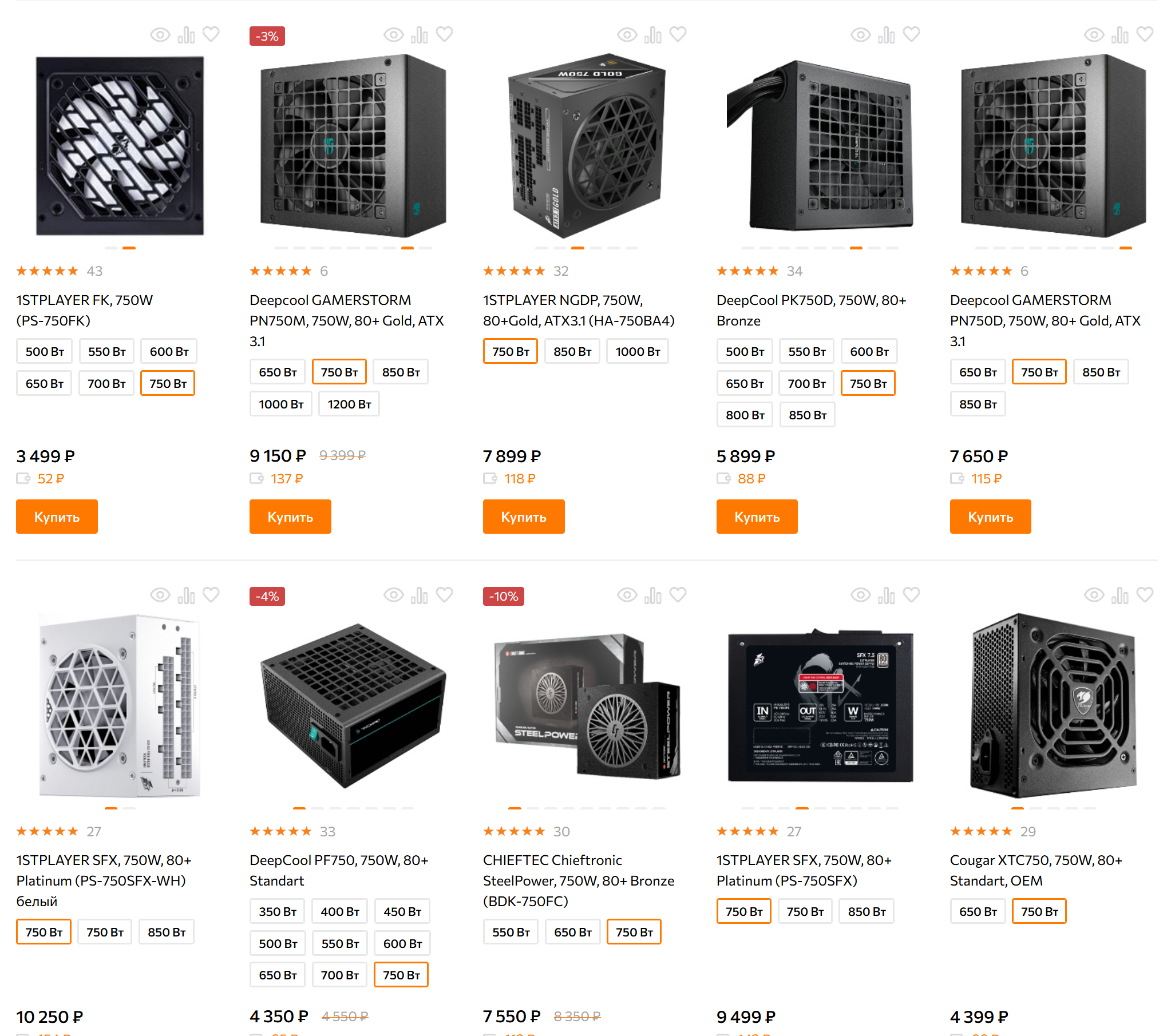 >>1055013 >Сейчас хочу ещё БП присмотреть на 850 Бери Писякуллер на 850 в днс, отличная начинка японские кондеры, в общем топ причем за 10-12к можно урвать, у самого такой стоит.