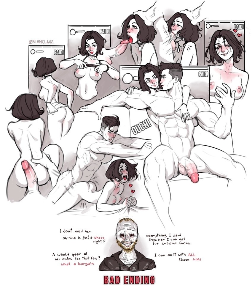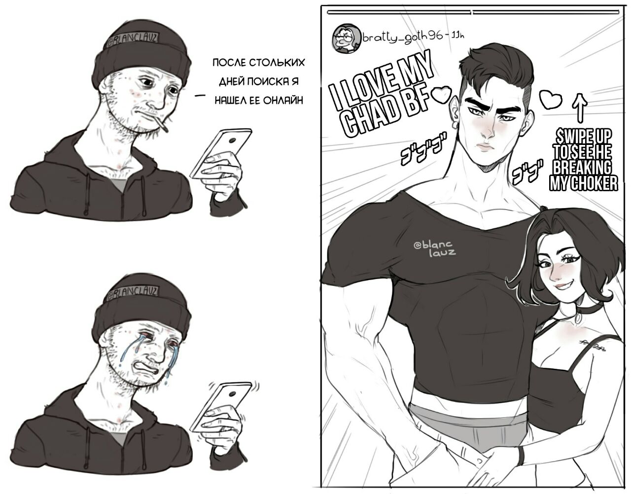 Девки просто секси — во время некоторых выходок синей у меня член вставал, особенно когда она прижималась всем телом, обхватывая гг ногами. Черная тоже ничего так и доставляла своими куколдскими загонами.
