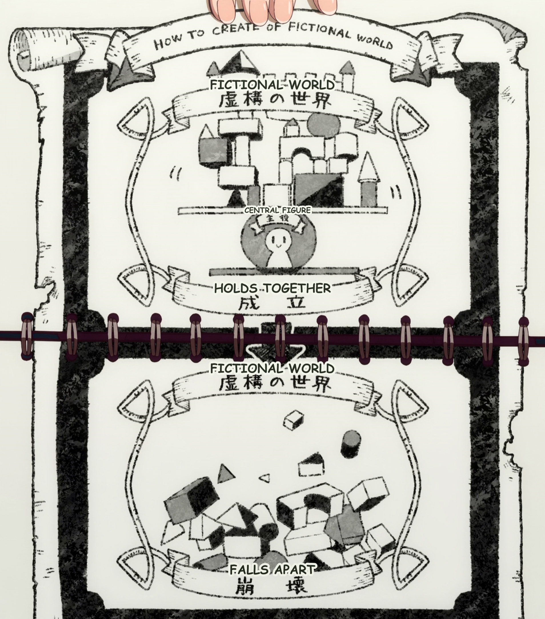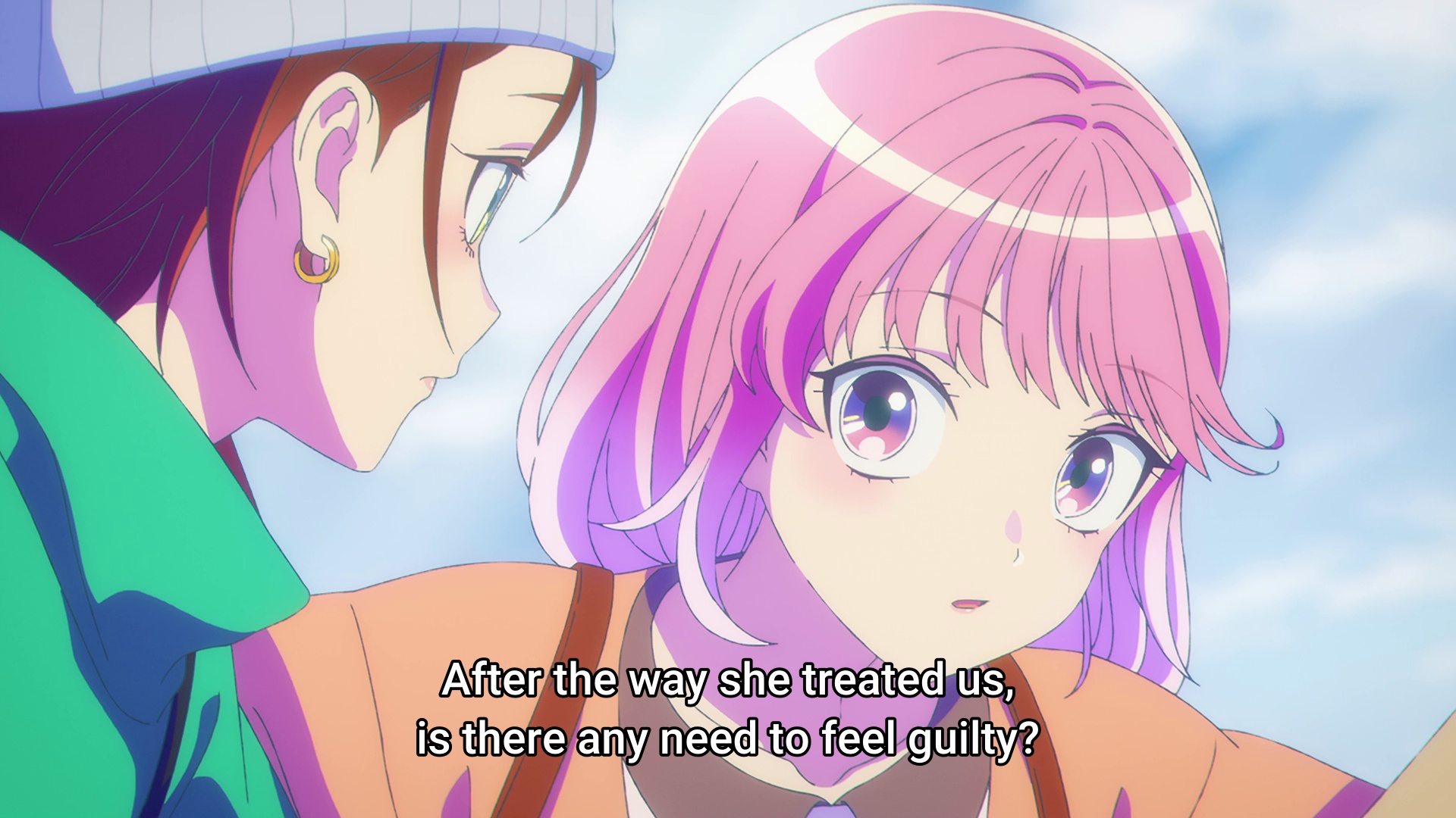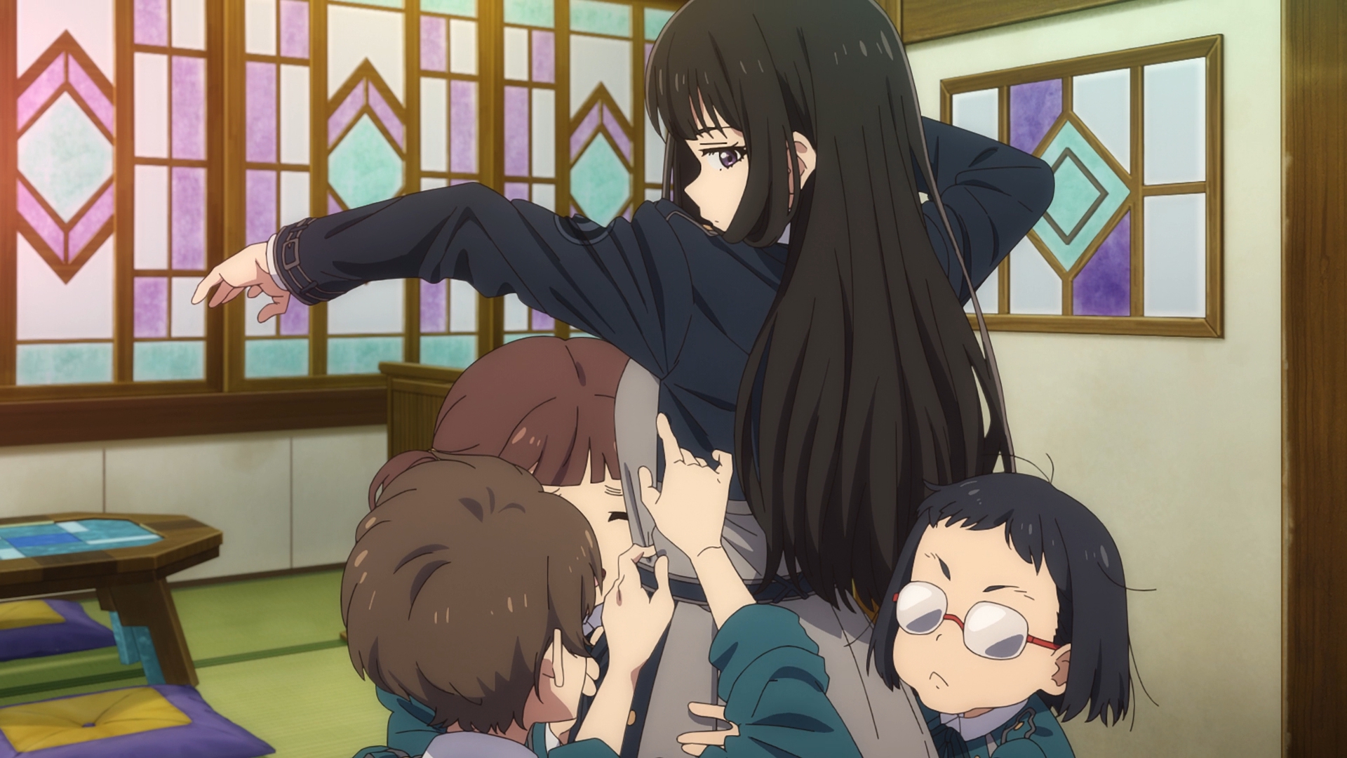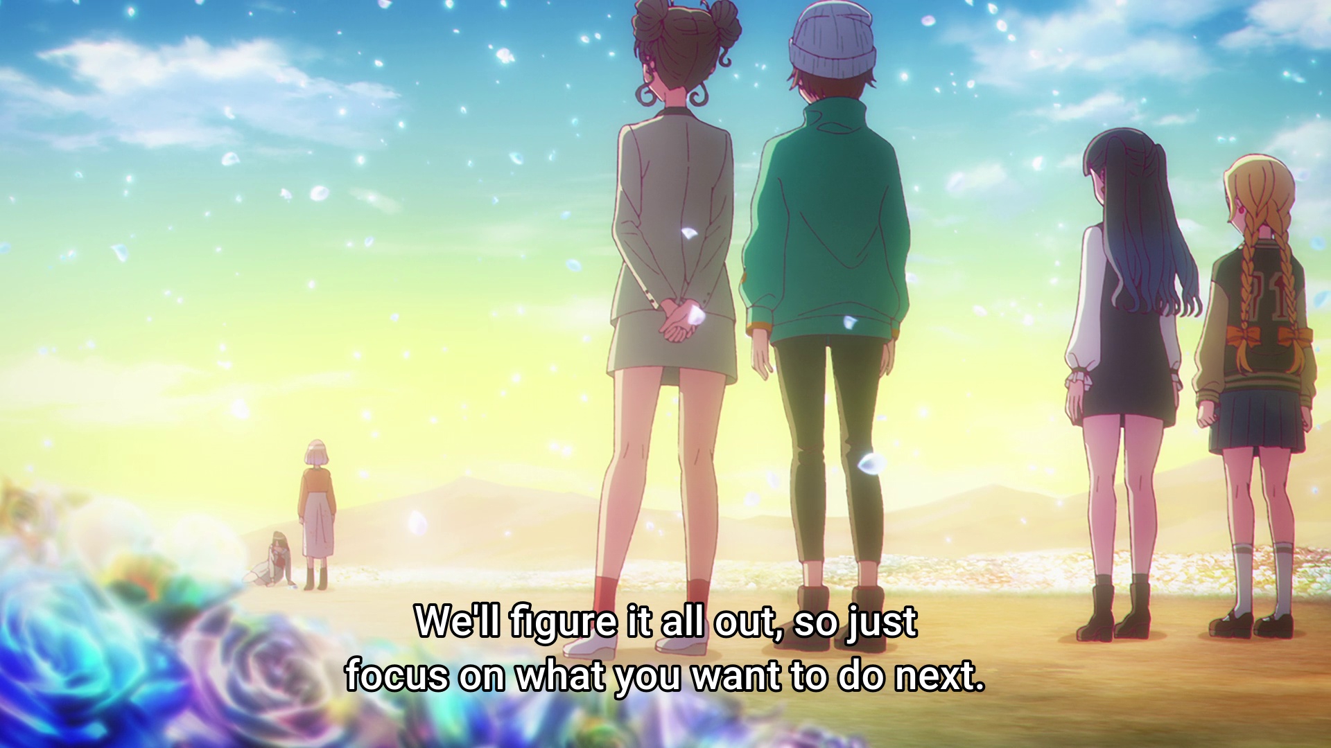 Но вообще не повезло Дога Кобо, вытянули хуёвый жребий. Это говно совершенно точно не заслуживало такой качественной экранизации. Если поначалу ещё куда ни шло, то потом пошли эти унылые арки, которые поочерёдно отбивали всякую приязнь к их героиням, а к концу ещё ояш начал без устали вопить и причитать как на последних двух пиках. И это блять просто заебало. И так в тайтле хватало раздражающей хуйни - "мы семья вы мои сестры семья семья ааа", шапка ебучая, шутки про псину, а под конец ещё и ояш решил добавить. Лучшая по итогу синяя, и наверное даже и хорошо, что её арки не было, а то и она тоже превратилась бы в вечнокраснеющего блоба, как томбойка. На младшую автор тоже фактически положил хуй, вся её роль свелась к тому, чтобы признаться в первой серии и потом вечно смотреть со стороны и ревновать. Ну и учитывая, что это автор канокари, ничего хорошего дальше ожидать не приходится. Поэтому надеюсь, что Дога Кобо не принудят дальше эту хуету снимать.