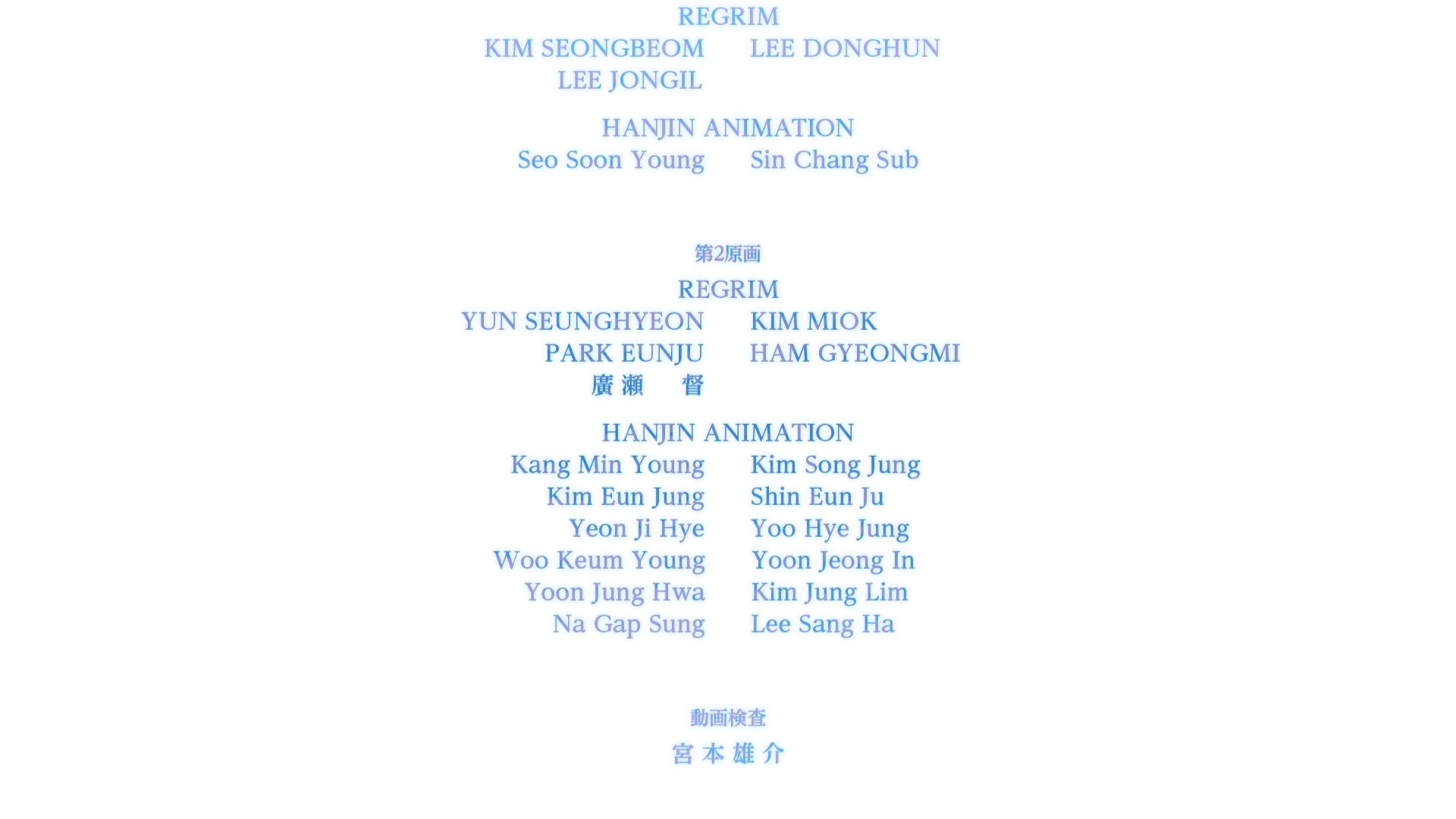 Юн Сёнгхуеон Ким Миок Хам Гёонгми Мим Ён Жунг Ву Кём Юнг Ким Юнг Лим Ким Сонг Джун Ким Сёнгбеом А также коллеги Чо, Йоо, Го, Со, Го и Янг из Нанжин анимэйшон