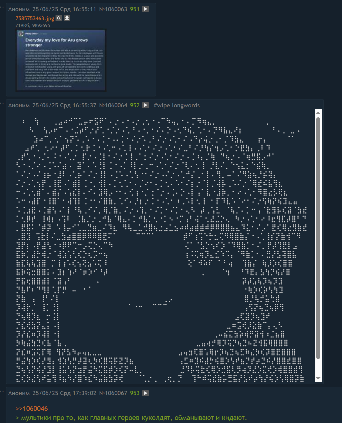 >>1060046 > мультики про то, как главных героев куколдят, обманывают и кидают. Ну и в чем он не прав? Мультики про такое в 100 раз интереснее ванильной говноромантики где клише через клише и через 100 томов они только за ручку подержались, или вообще копрогаремники с чмом трасуном.