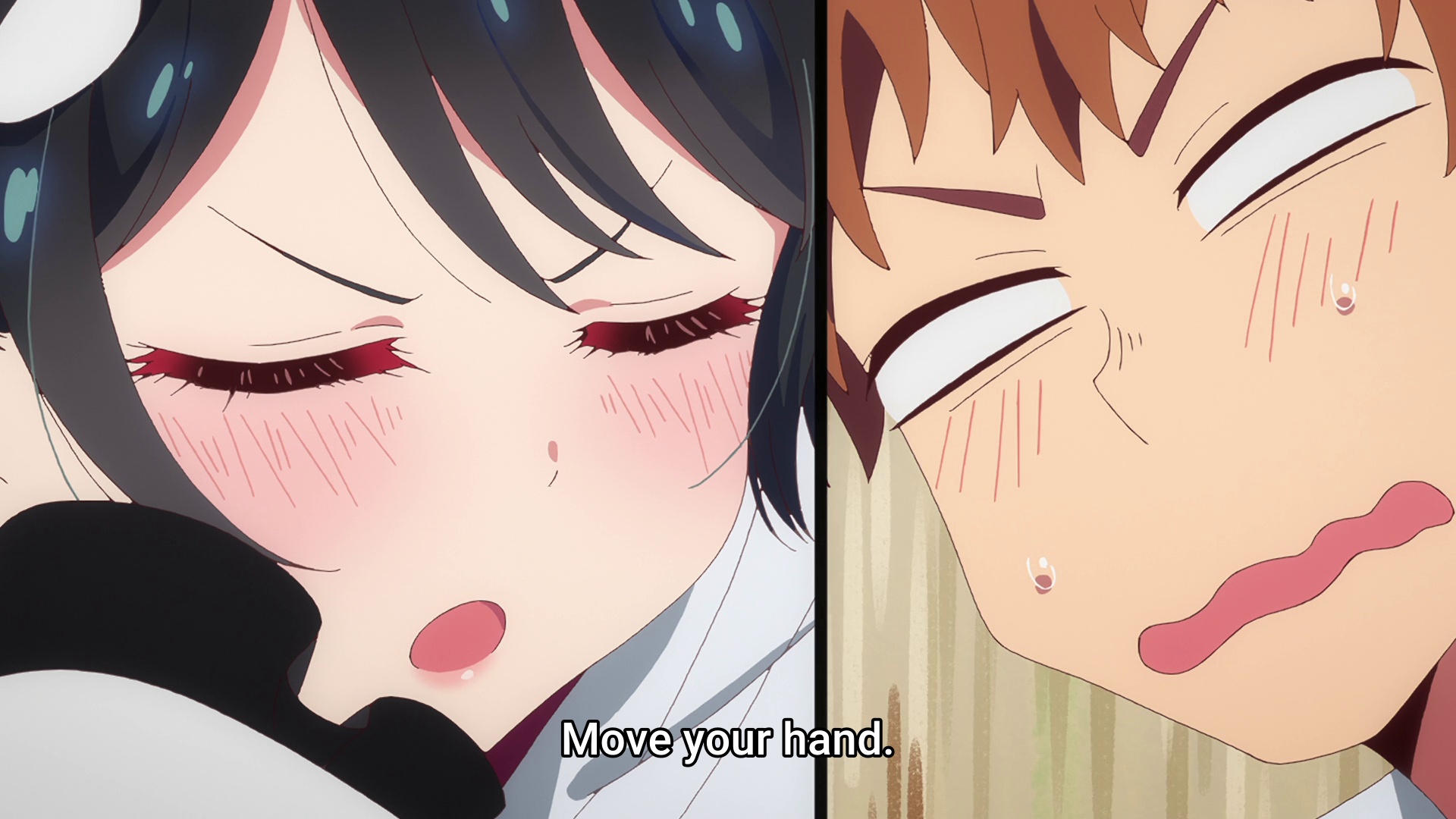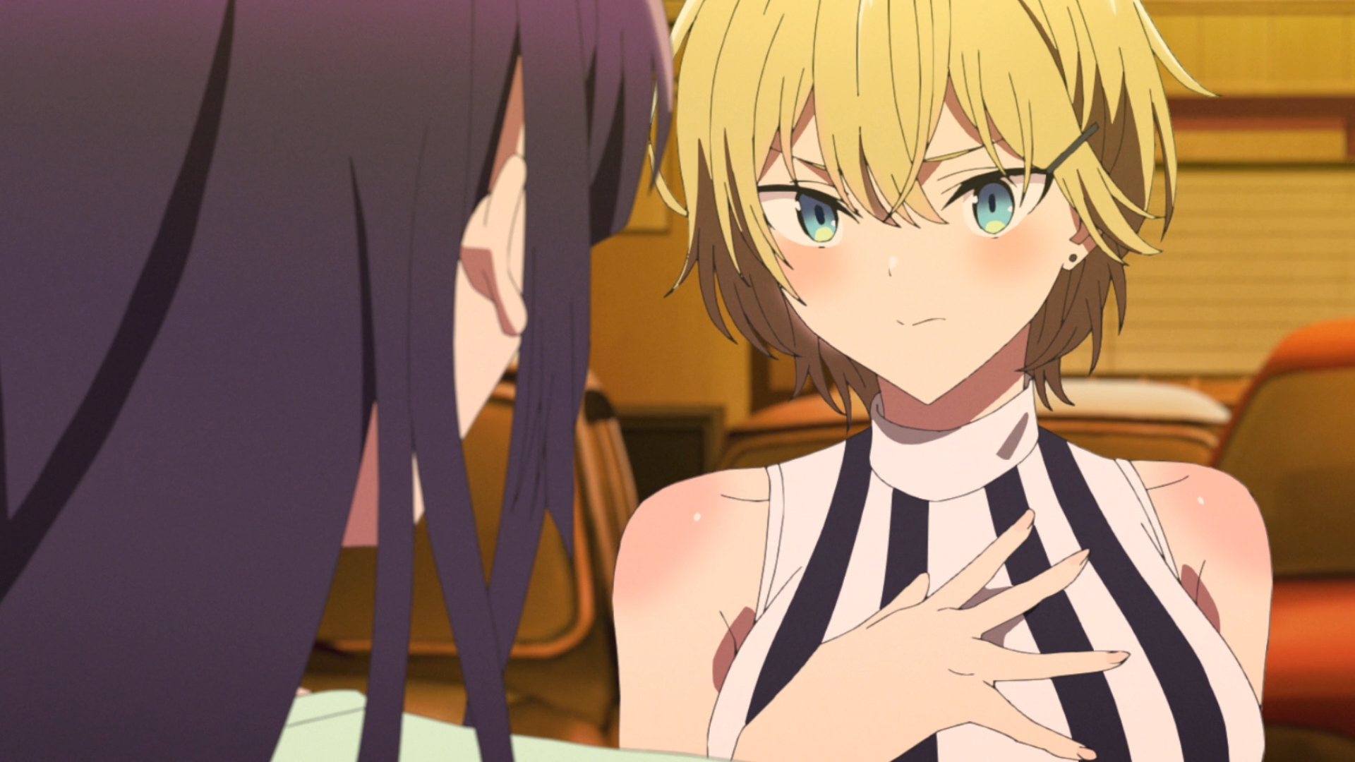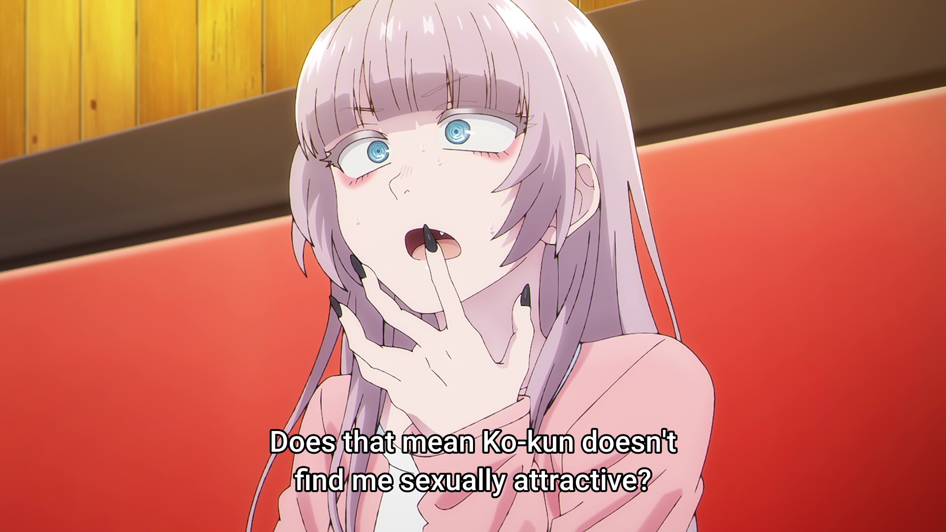 Чет не совсем понял отчего она тут покраснела и что авторы имели в виду. Тип на жопу ояша засмотрелась что ли?