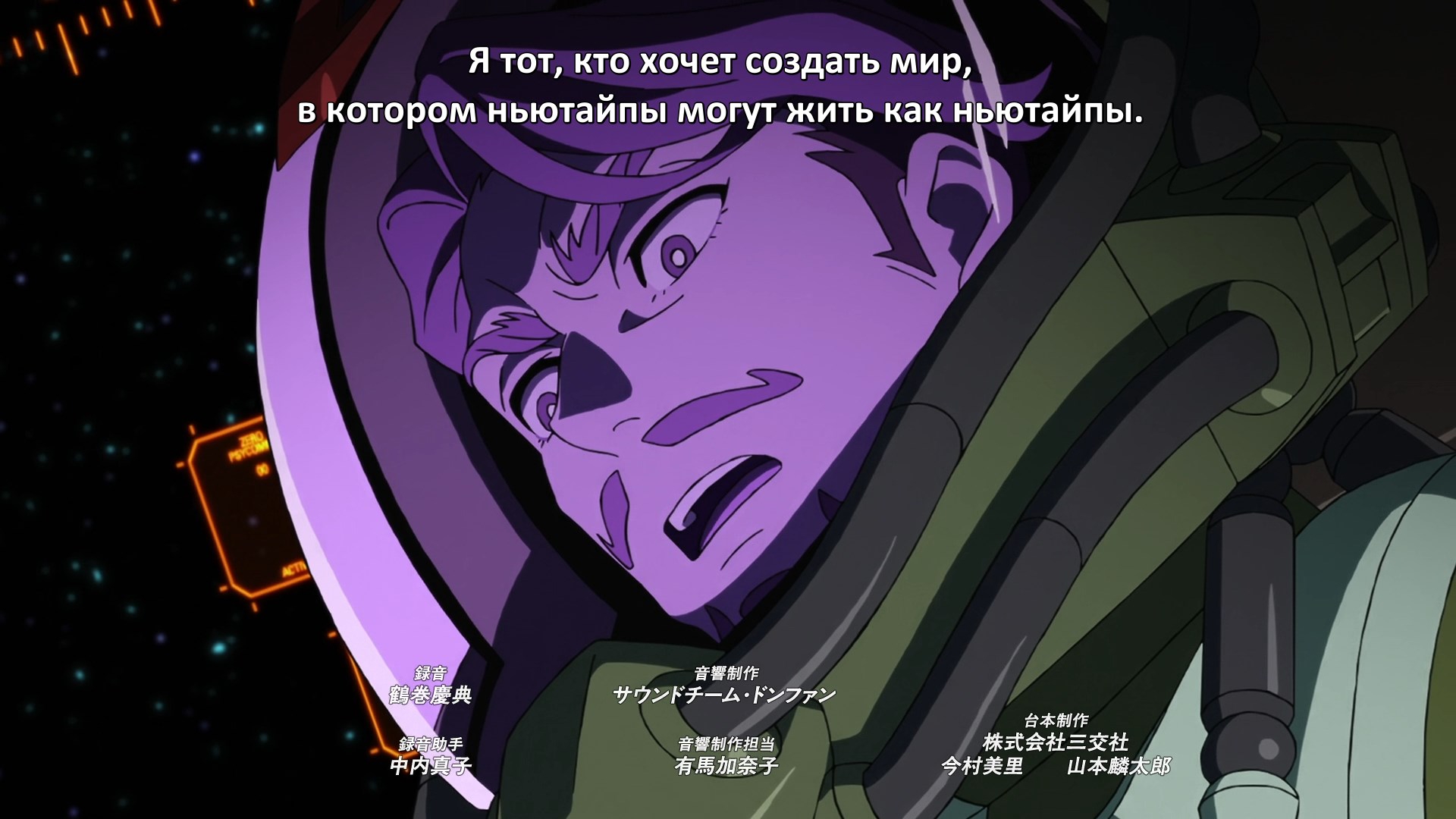 Двё тёлки ГГ влюбились в одного чунибуйнутого парня и чуть ли не орут в эфир как они его хотят, будто гарем от лица баб смотрю. Мехи полностью еванулись (ребилднулись), про какую-то физику нет и речи, ева-позы прилагаются. — Ты ньютайп — Я ньютайп — Я искусственный ньютайп.