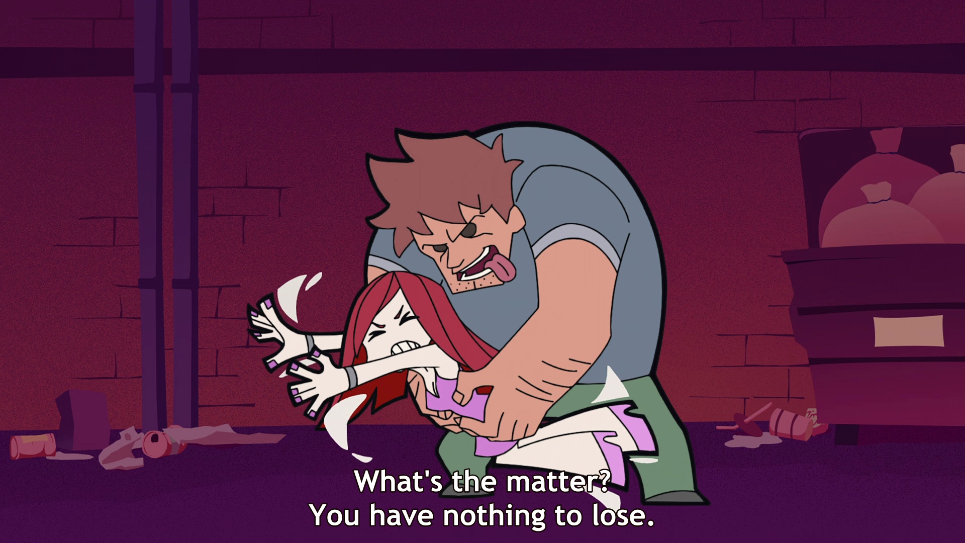 Твист со злой няхой мне как обычно не зашел! :З Нахуя? Вот нахуя?! Смотрю я такой слайс и думаю... чего то не хватает? Точно!!! Надо что бы ебучки били!!! Как оно вообще работает?