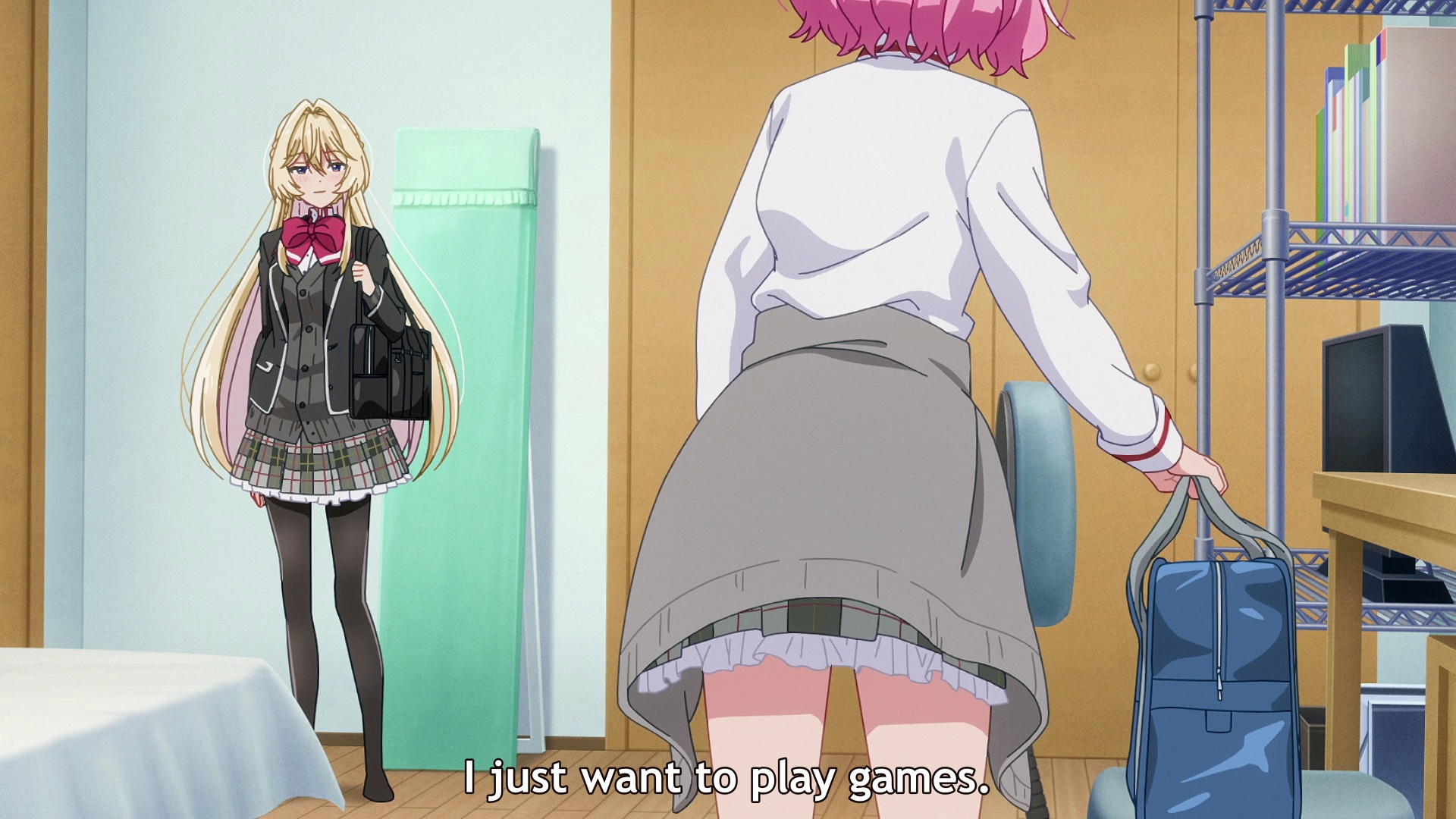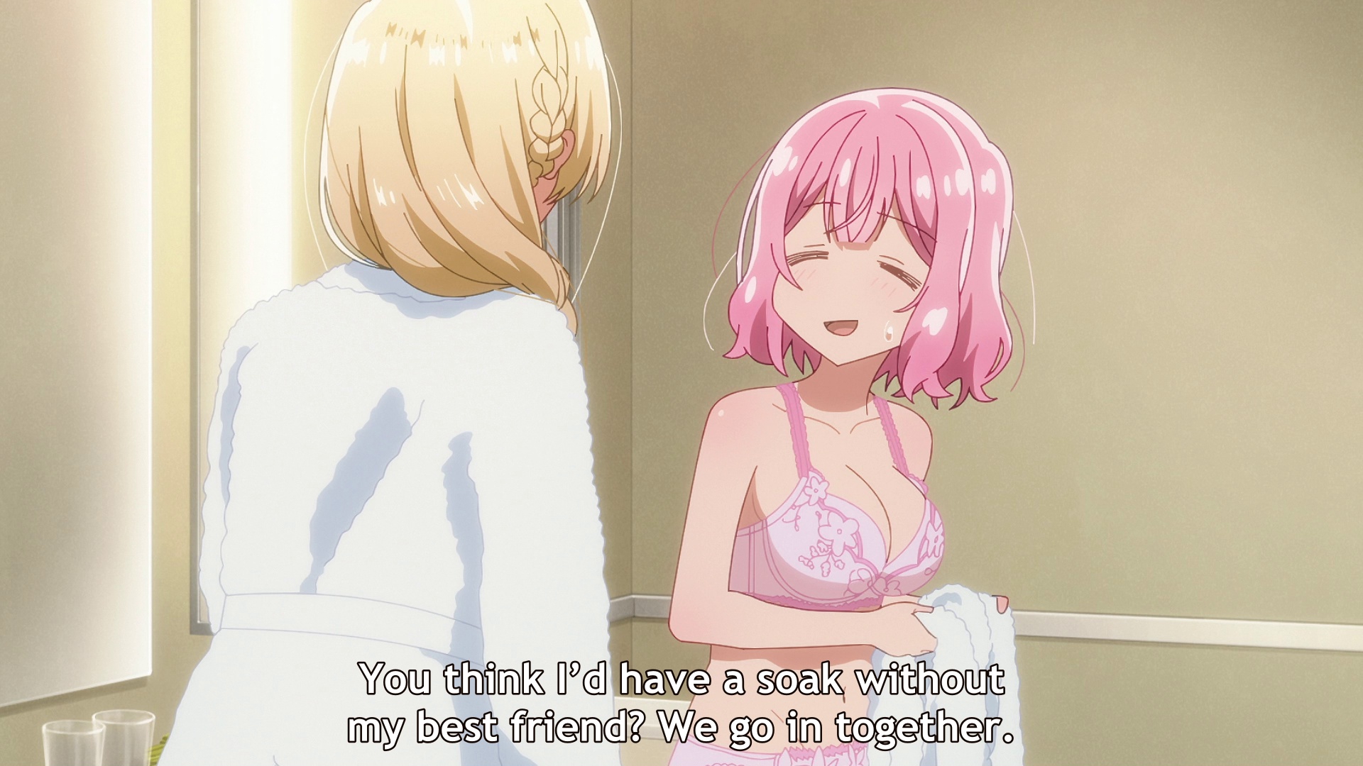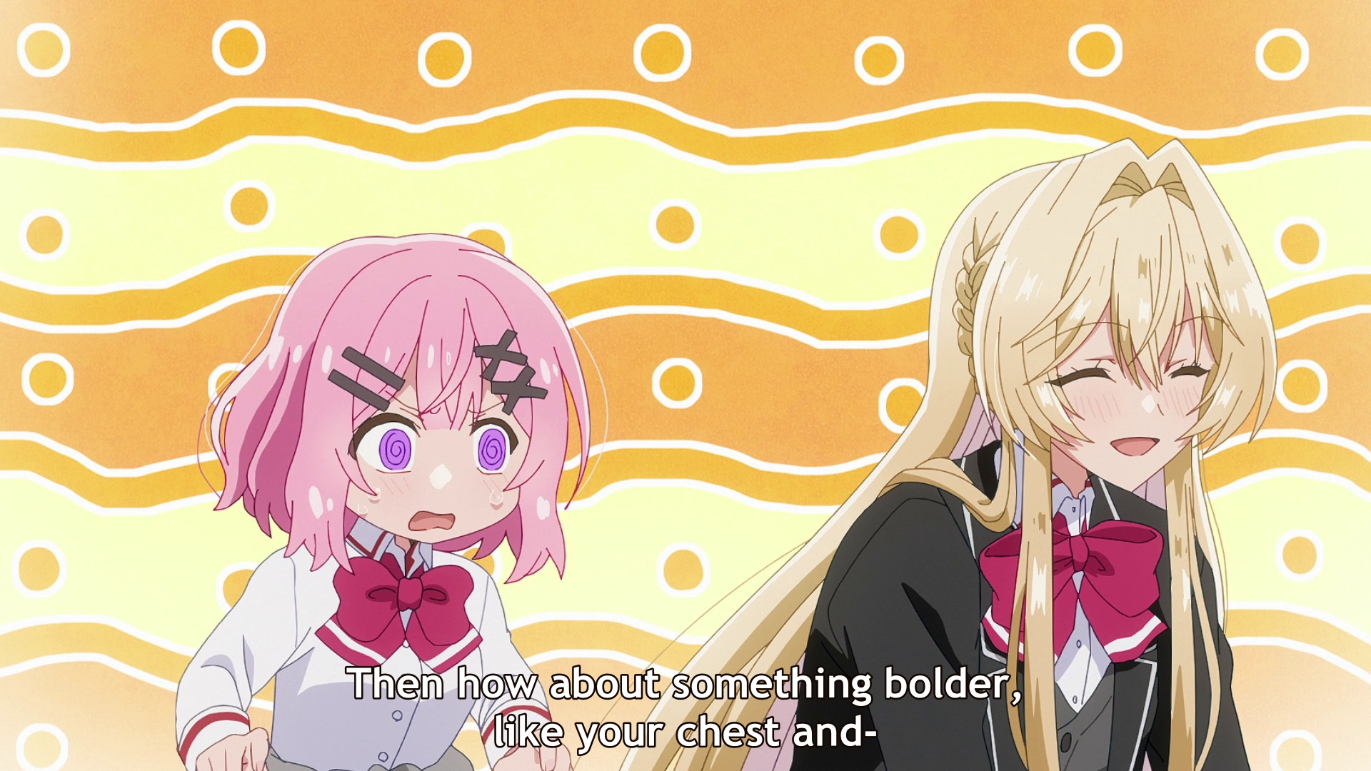 Ну, судя по всему, будет опять смишнявочное говно типа той хуйни про соблазнение злодейки. Но тут хоть девочки красивые, так что можно дать шанс. Да и часть про день пара-день друзья хотя бы потенциально норм идея. Хотя вот эти монологи розовой про Я ХОЧУ БЫТЬ С НЕЙ ЛУЧШИМИ ПОДРУГАМИ такая натужная неестественная чушь, что я просто не могу. Ну что за дружбовлюблённость такая, в которой люди блять мечтают быть с кем-то конкретным лучшими друзьями.