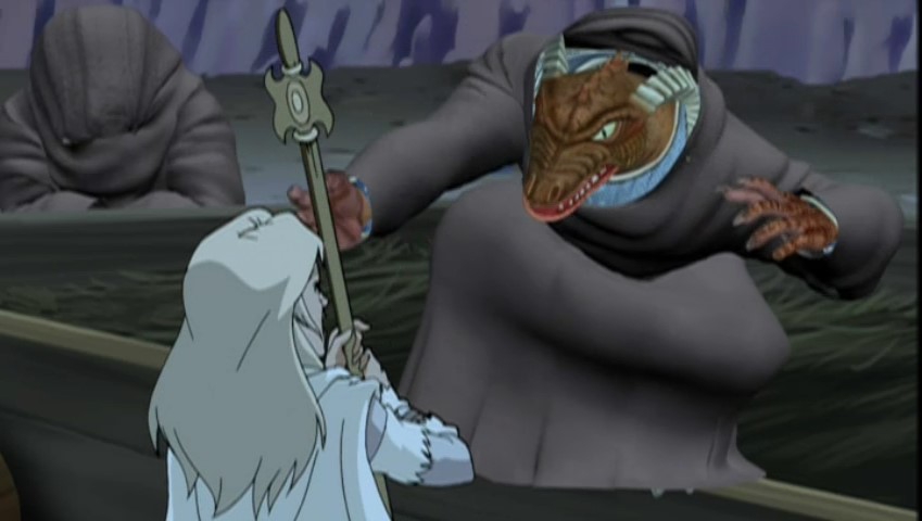 Ну и много всякого порезали. Из овражных гномов осталась одна Бупу, на 2 минутки. Битва с первой дарконицей быстро очень произошла. Даже первой стычки не было, когда она там РиверВинда кислотой облила. Ну и как ночью к Танису похотливая эльфийка завалиилась заменили простым разговором у озера. Зато вон как в мультосе она его встречает, лол.