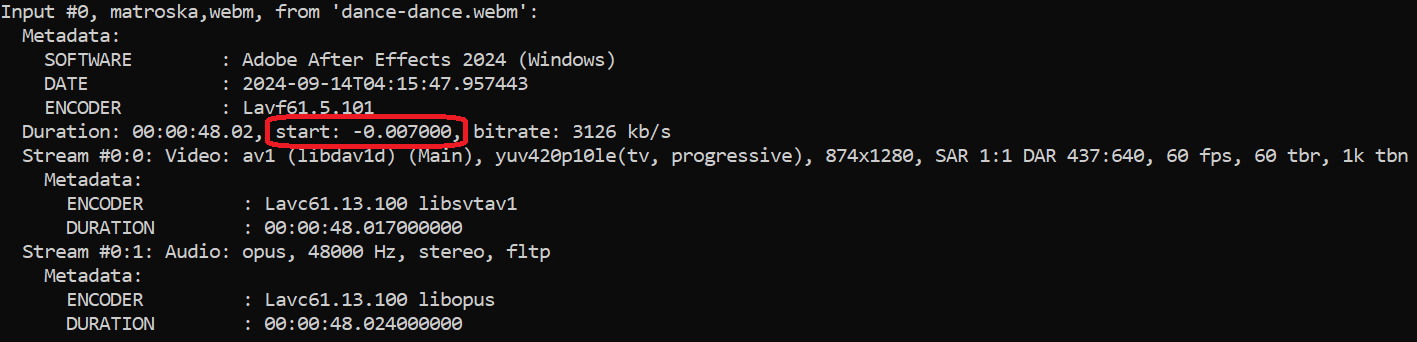 >>1060188 У меня при кодировании в AV1 отваливалось превью когда start был отрецательным. Смотрел параметры на изображении через ffprobe. Если у тебя такой же случай, то можешь исправить его при помощи команды: