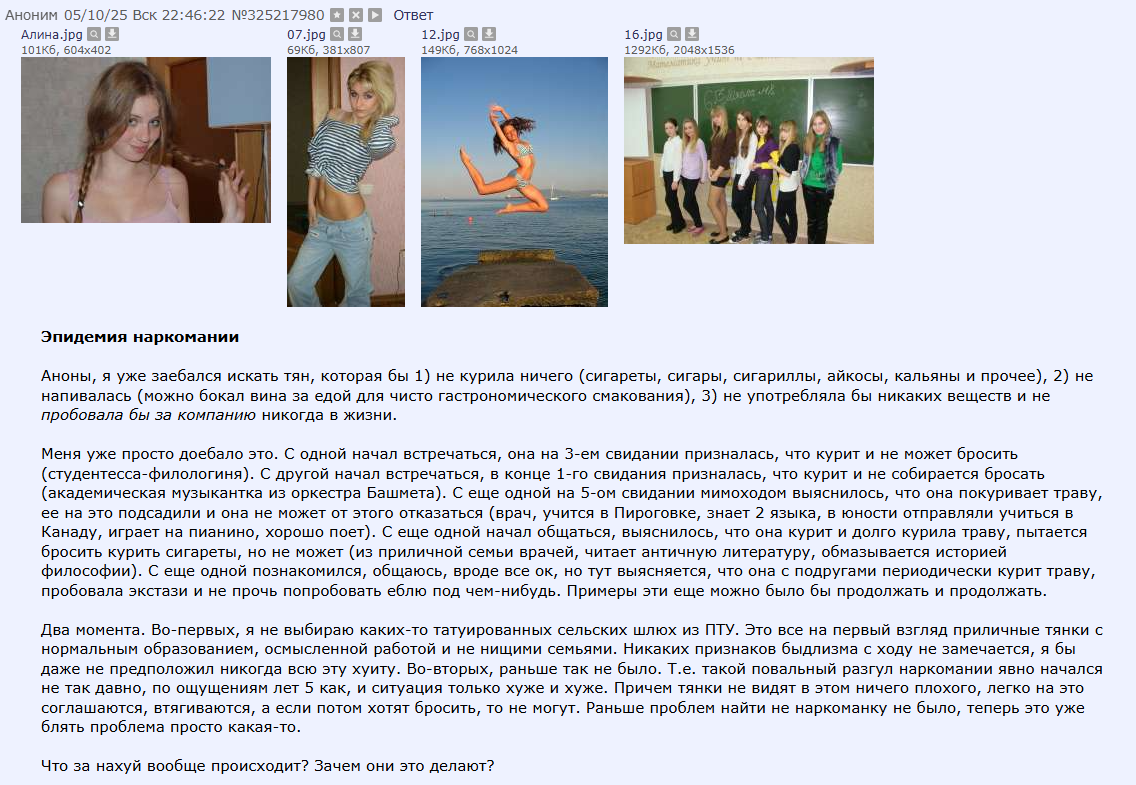 >Нахуя тратить деньги на шлюх, если можно платить студентке? Ебу девчонку 23лвл за 15 на ночь, тело огонь, познакомился в дайвинчике где честно и написал в анкете чего хочу. Мимо скуф 38. Дядя Ильдар?
