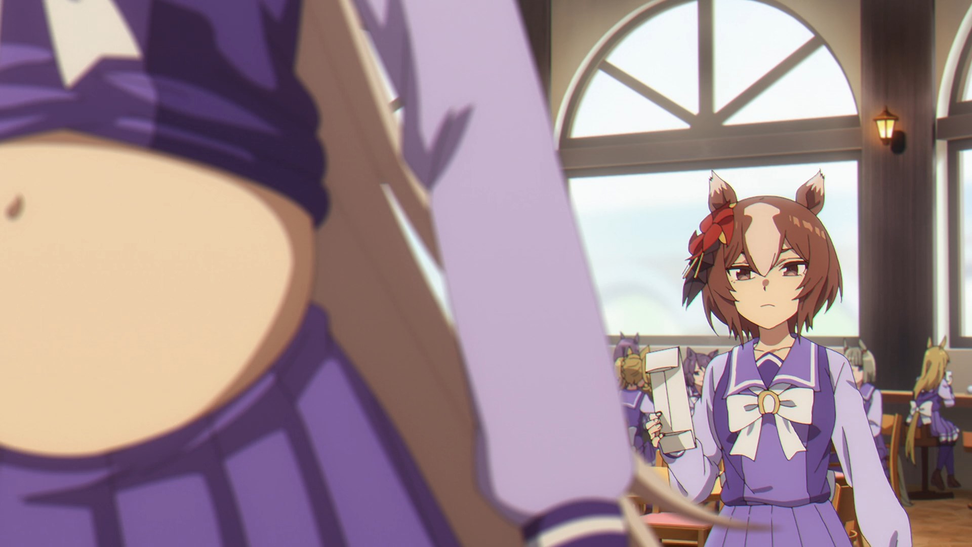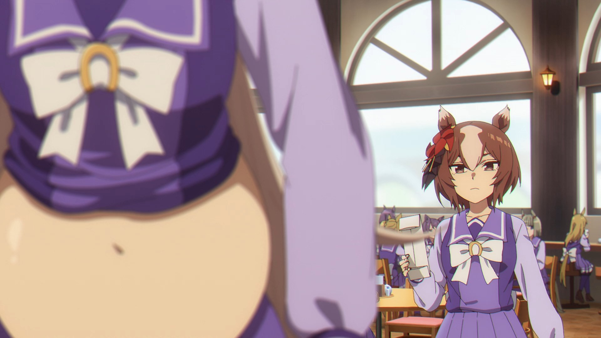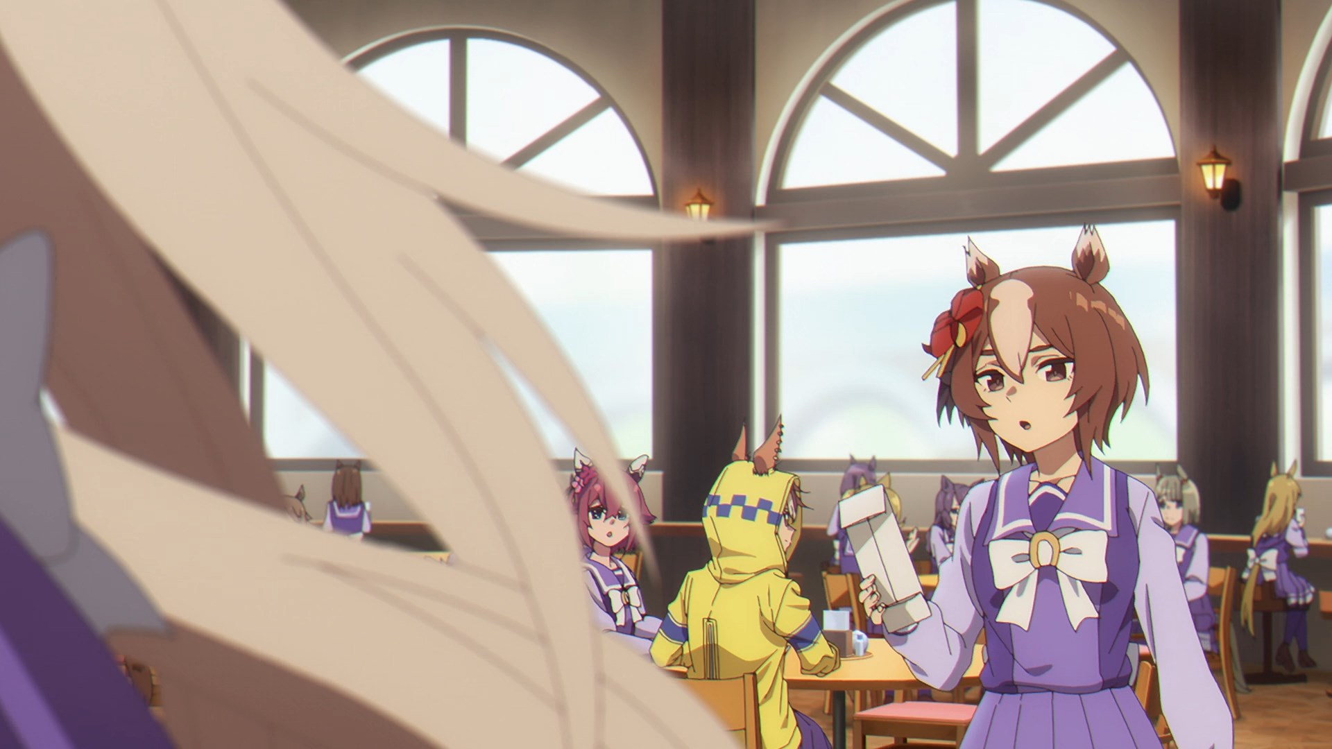 И показывают такие в это эпизоде топовый забег лошадей в платьях и в некоторых кадрах Огури в региональной спортивке, а по окончанию забега оказываетя, что Огури участвовала не в топовом, где все в платьях, который показывали, а в сраном региональном забеге и её послали нахуй с её заявкой задней датой.