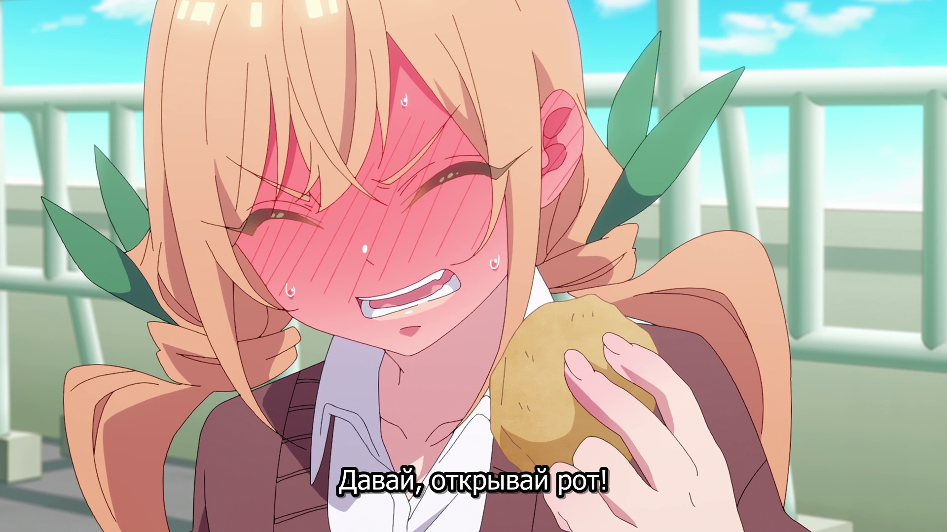 Как-то хидойно сажать чмошеля флиртовать с новинкой, сразу после романтической серии, в которой Китагава чуть ли не в любви ему признавалась. Здесь либо неудачный скип куска манги, либо сценарист совсем ебобо.
