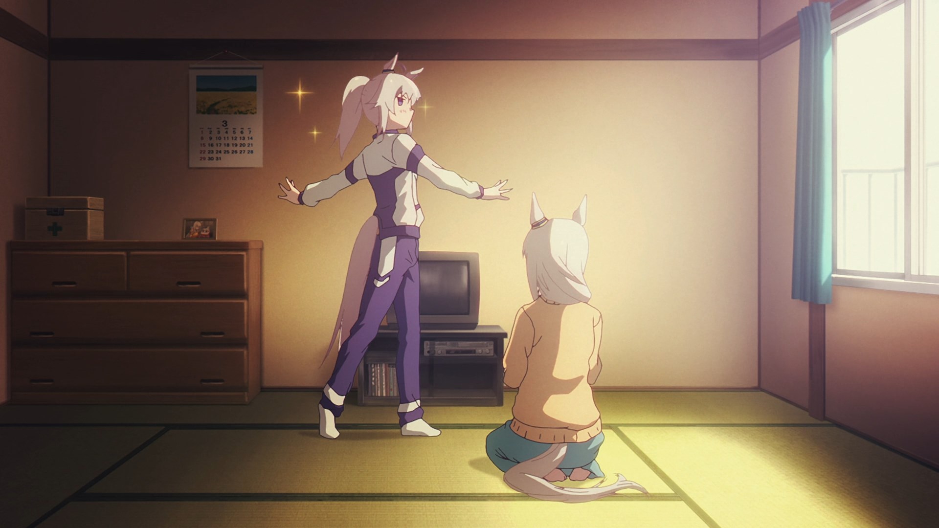 Анима с лошадьми наконец-то стала анимой про спорт — позиционирование на треке, тактика обхода, стратегия забега, внутренние внешние круги, тип и состояние грунта, на котором выполняется забег. Всего этого вообще не было в первом сезоне, там было "Откроются ворота и беги по кругу))".