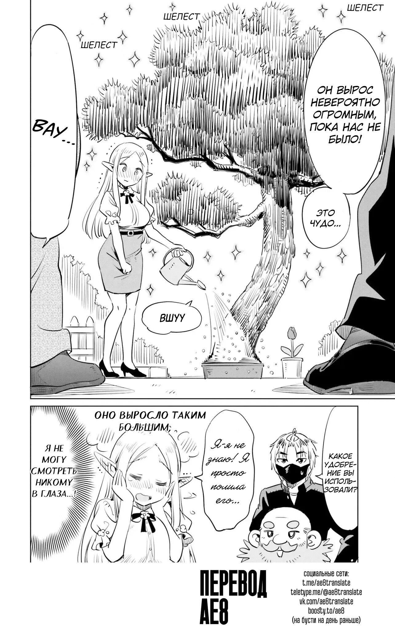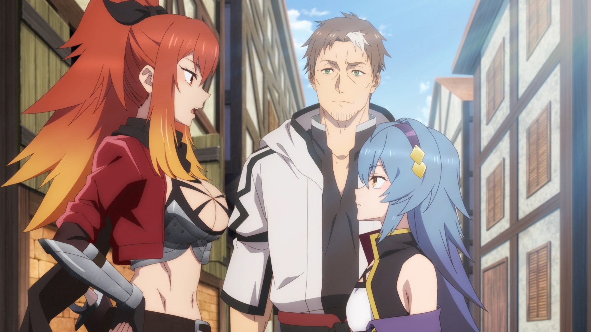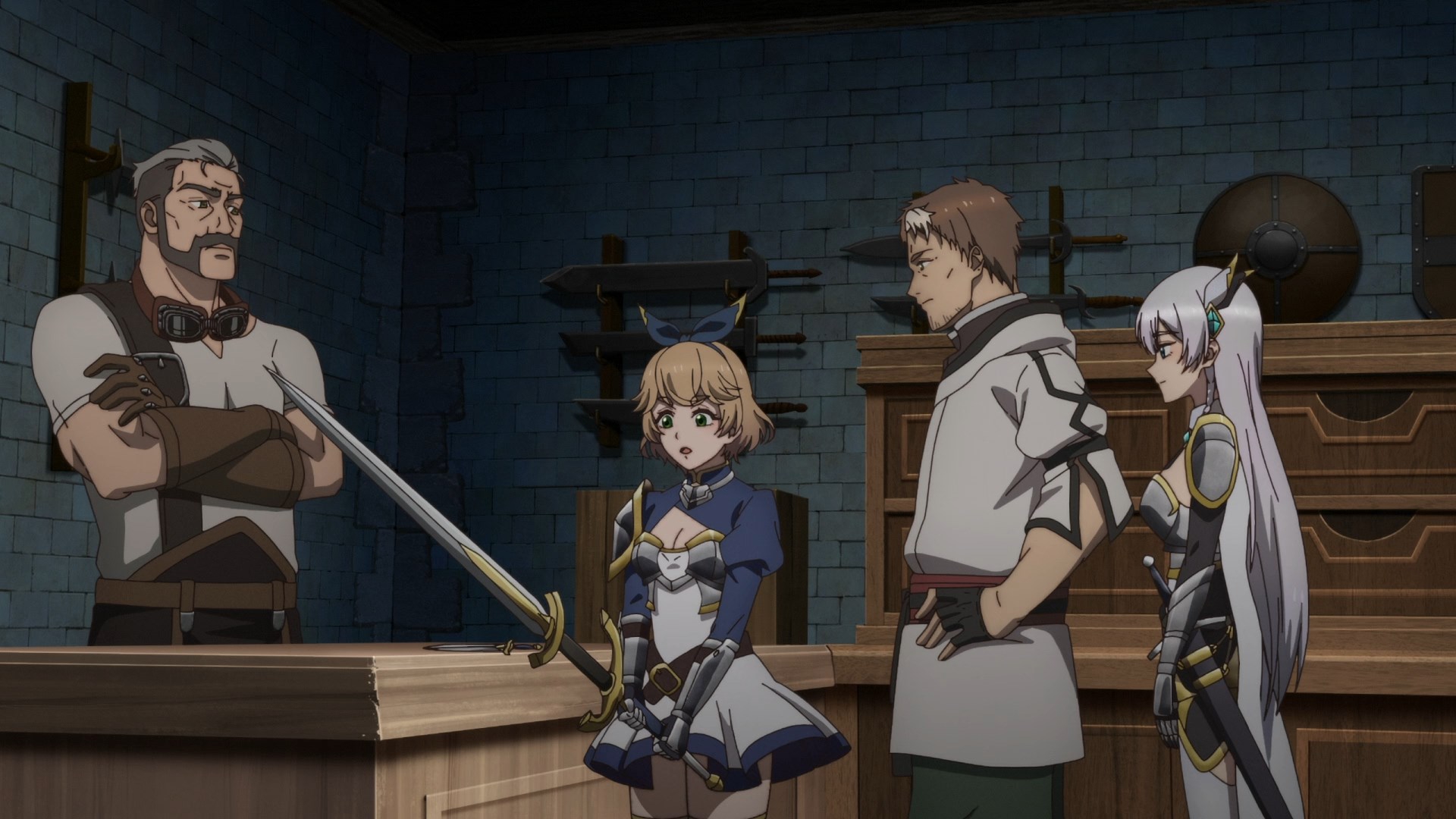 У ГГ-мастера-мечника в жизни было куча учеников, из которых в мульте почти пол дюжины баб сейчас крутятся с ним, но без откровенной тупизны и пошлостей. Мужик за прилавком тоже его ученик. — натянуто, но терпимо.