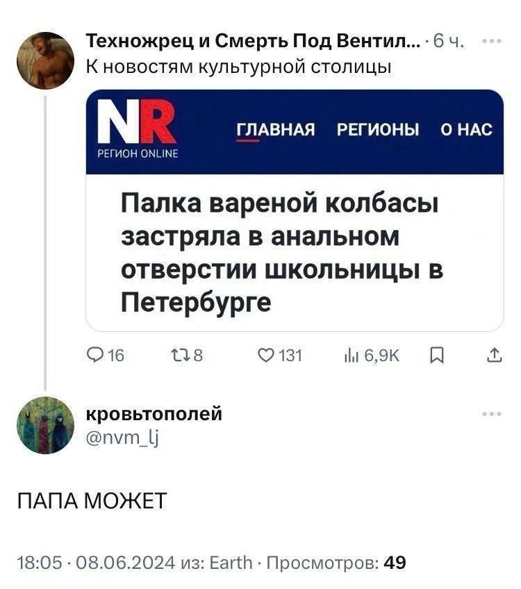 >>1077751 Справедливости ради тесак сам был любителем молодых тян. Педосексуал в его понимании — это тот который по мальчикам. Стоит на молодых тян — значит здоров. На мальчиков — болен. Такая логика у тесака была.