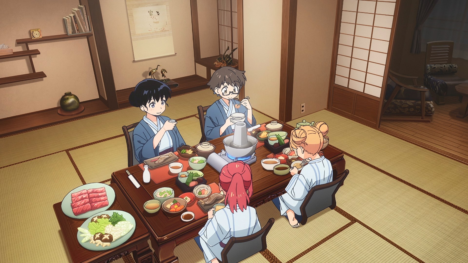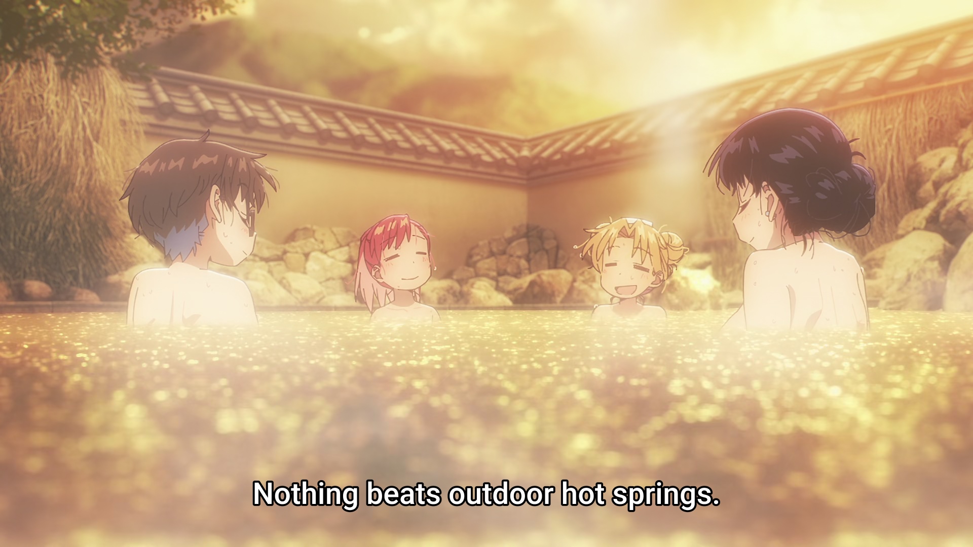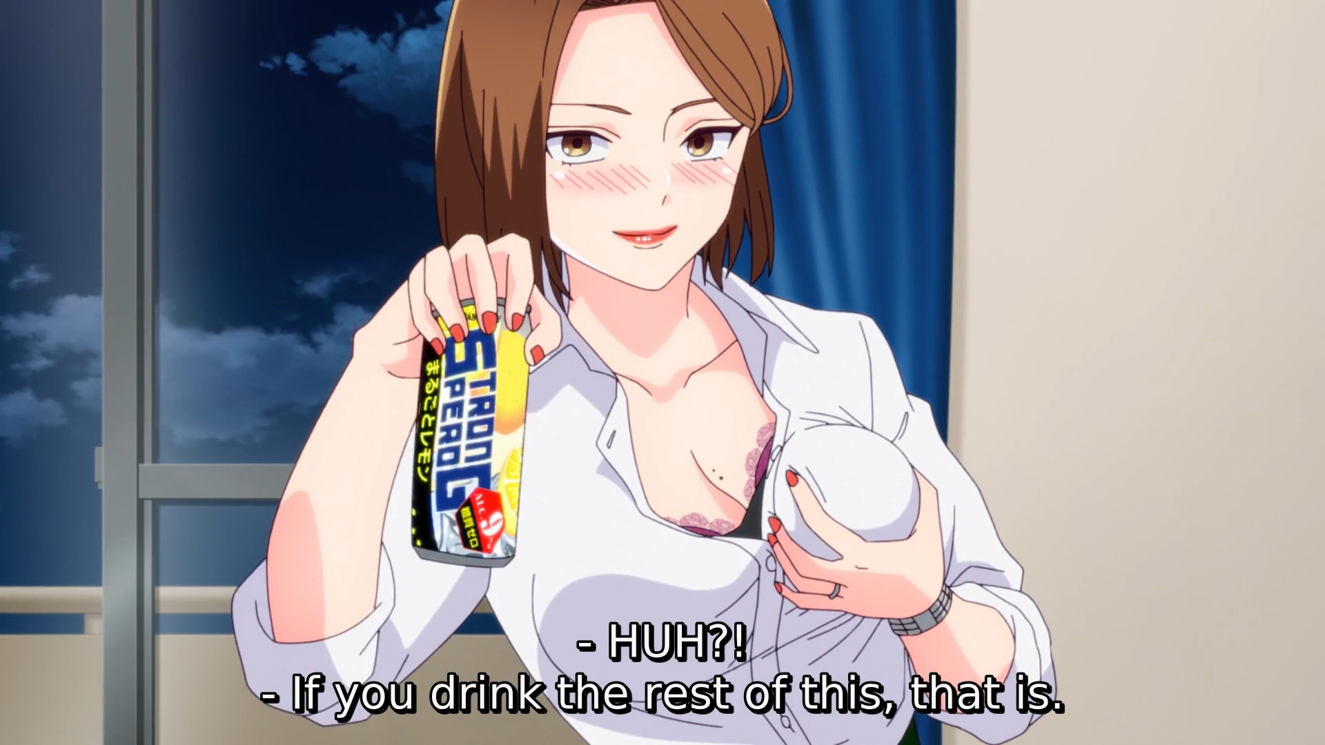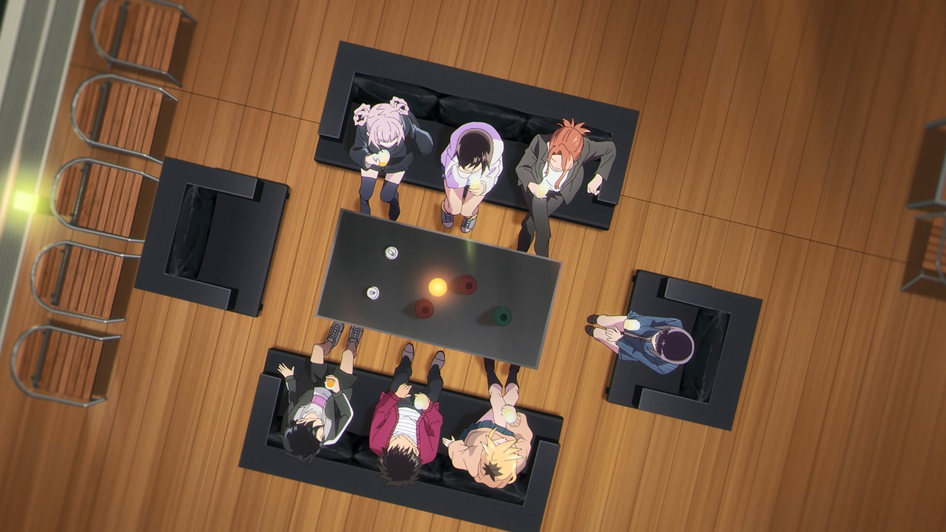 Все до одного сидят бухают, а ГГ один хер сок налили, потому что несовершеннолетний. Взрослая жизнь с точки зрения аниме, надо понимать. Видимо такая же скрепа для япов, как пиксельная пизда в порнухе, которую если нарушить, то вместо проката на тв получаешь хуй.
