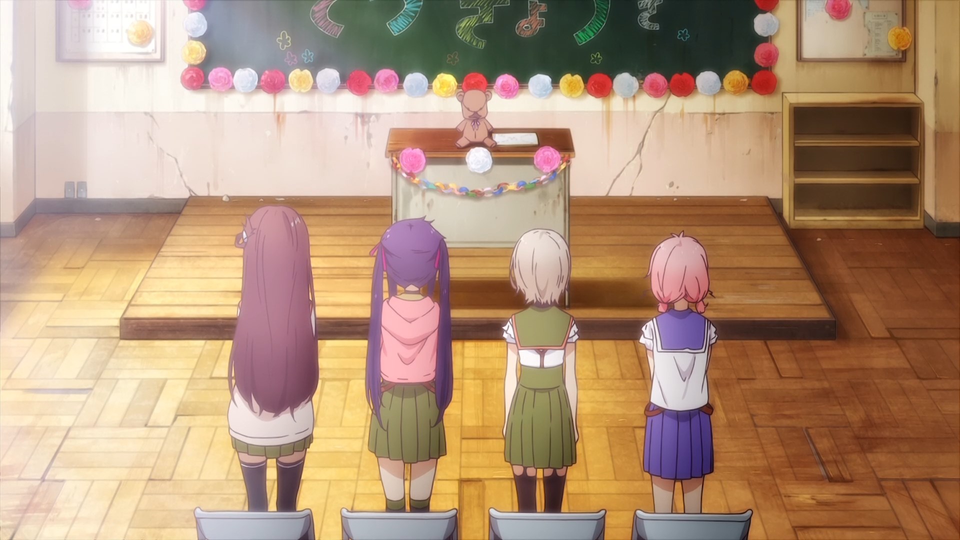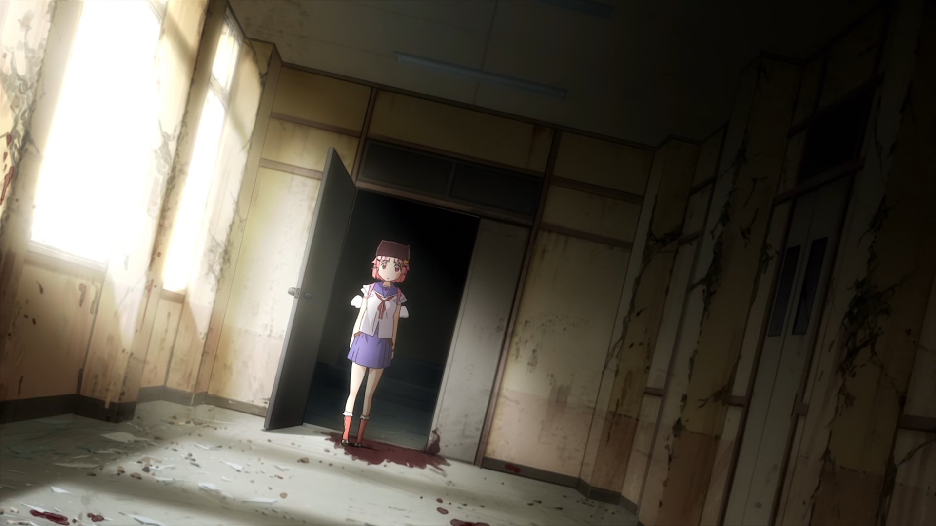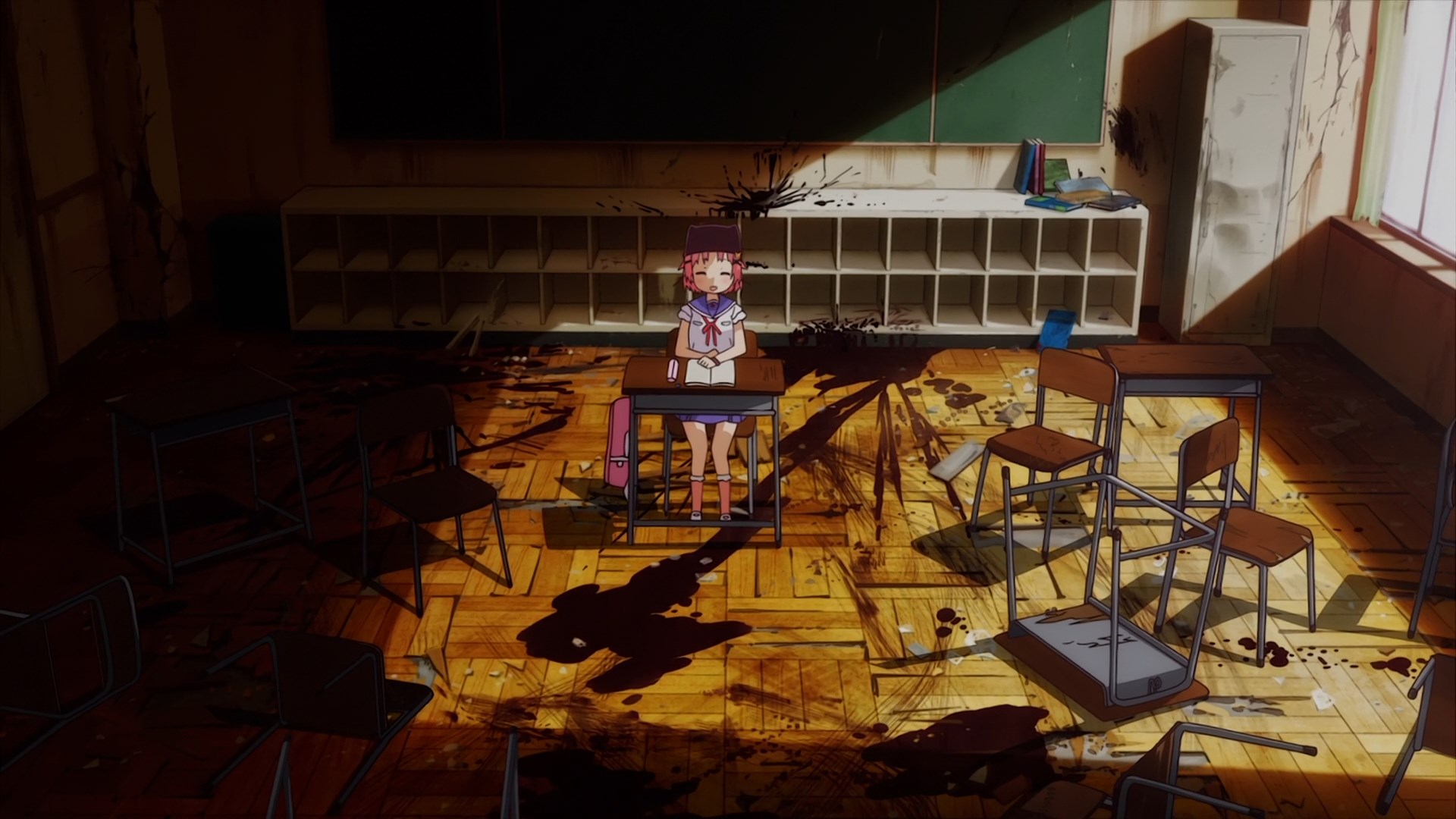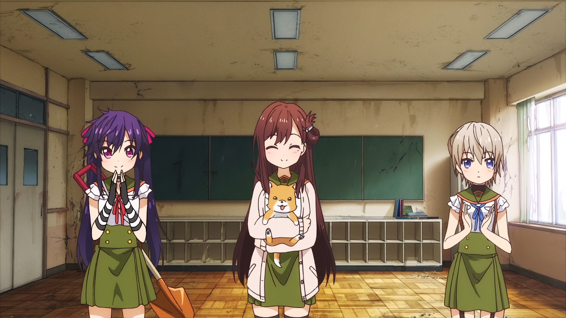 Очень странное произведение, взять слайсик с милыми девочками и поместить его в центр зомби апока звучит интересно, но вышел хуевый винегрет из слабо сочетающихся вещей, слабая режиссура и прописка, они живут в школе которую толком не исследовали, школа какая-то непростая и обустроена для того чтобы в ней можно было комфортно жить в условиях кризиса, на крыше огород, солнечные панели и электрогенераторы, заборник дождевой воды с помпой очистки, все на 100% автономное, в подвале убежище/бункер, в который вообще никто никогда не ходил, в самой школе можно найти документы о биологическом оружии и эпидемии, которая очевидно в их городке и разыгралась. Лор раскрывается очень плохо и как бы мимоходом, на переднем плане слайсобыт или потужная драма, параллельно еще педалятся темы которые я в прошлых постах описал.
