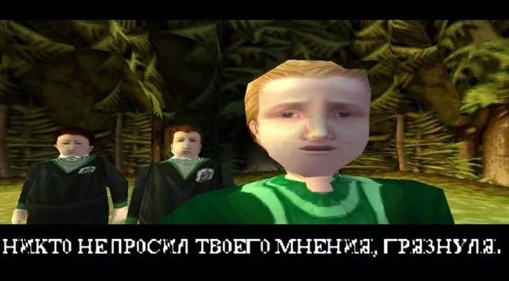 И вообще могла бы разыграть, чтобы Малфой встал на сторону Гарри Поттера, типа "Я хочу топить за самых сильных и пиздатых волшебников, а хуесосы Воландеморта уже сколько времени не могут занасить сраного школьника, значит школьник сильнее все этих юбервобшелников хуесосаф и я теперь буду за него сасай лалка" чет такое, ну, могла бы.