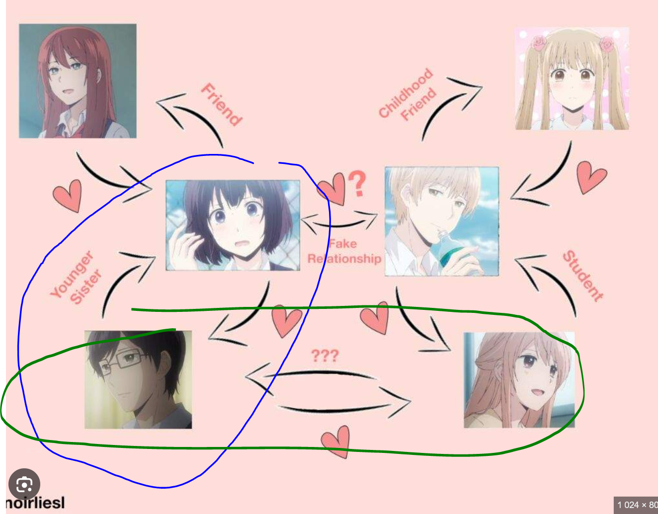 >>1083429 >но при этом встречается с каким-то другим довничем, который тоже любит другую, которая училка шлюха. Это старший брат ГГ (синее), который подобрал оттраханную училкуи женился на ней (зелёное).