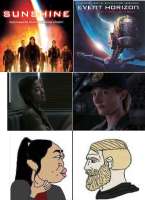 Ну и настолько же ебанутый сюжет, в котором корабль сначала на полпути, с середины фильма уже в полутора днях от цели, а когда в конце псих всех гасит и фильм надо форсировать, то они вообще в упоре к Солнцу.